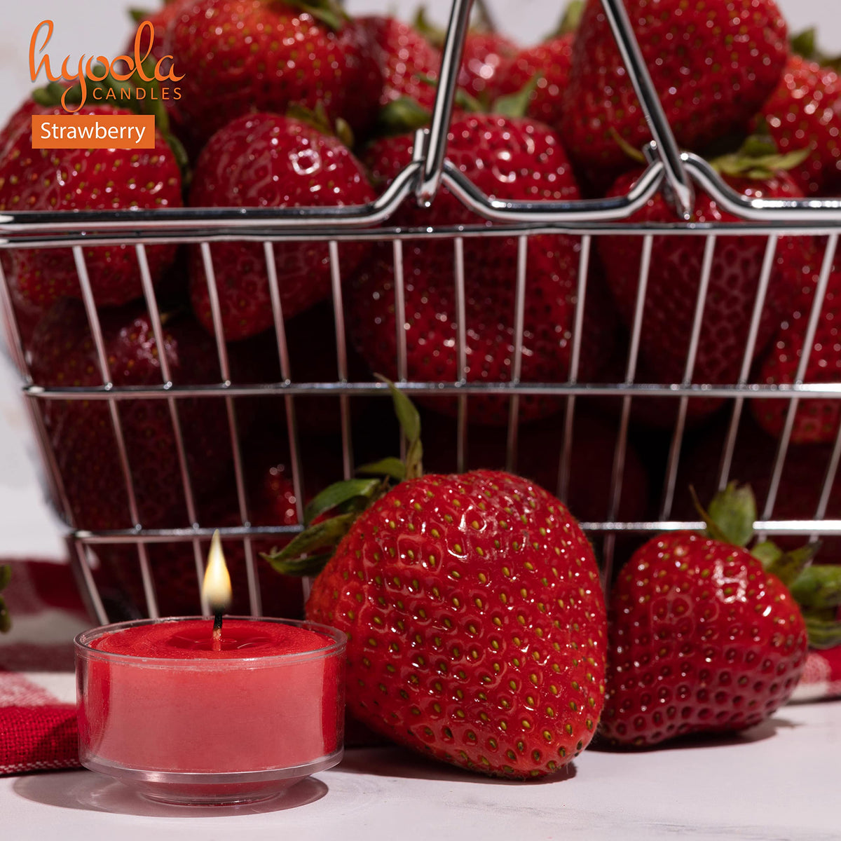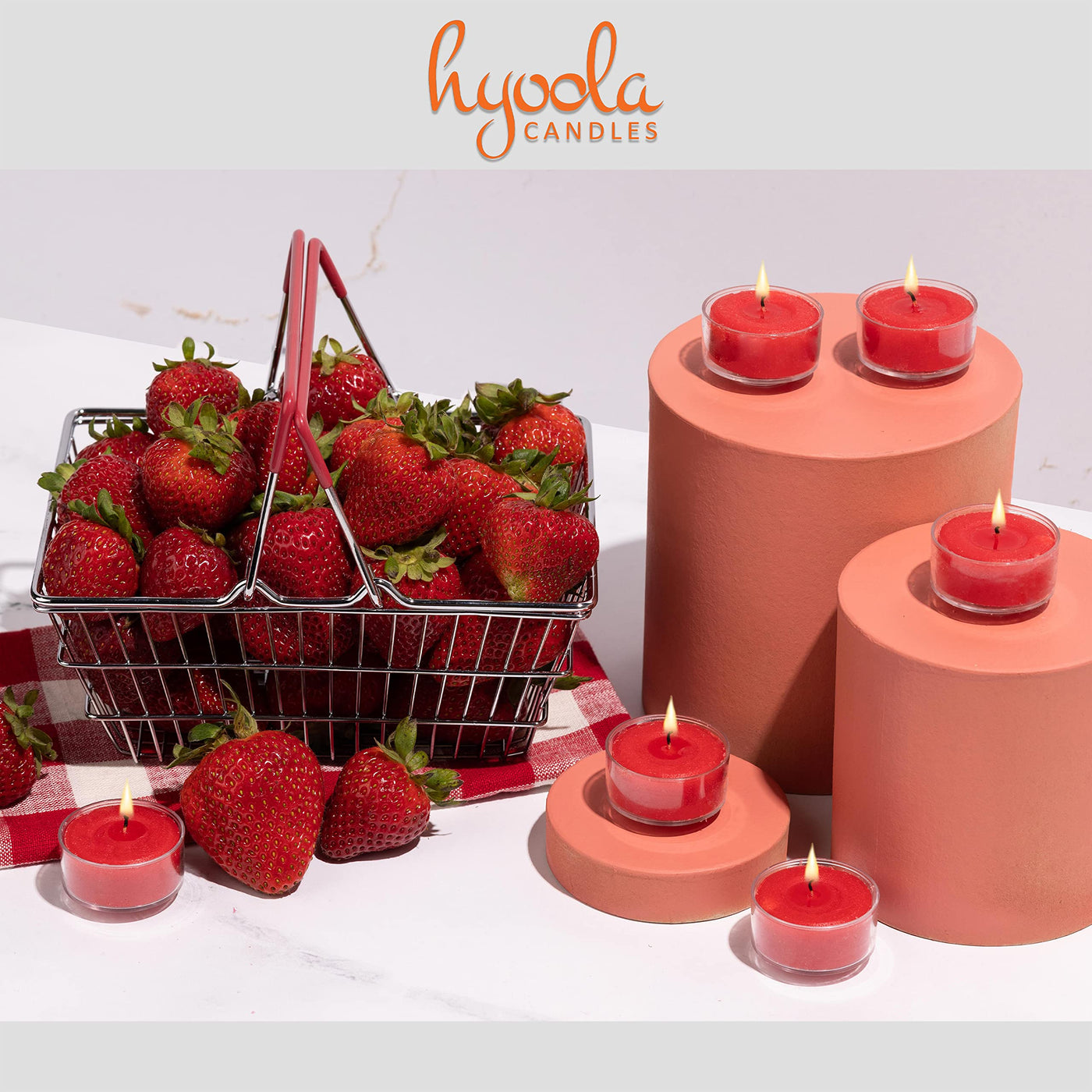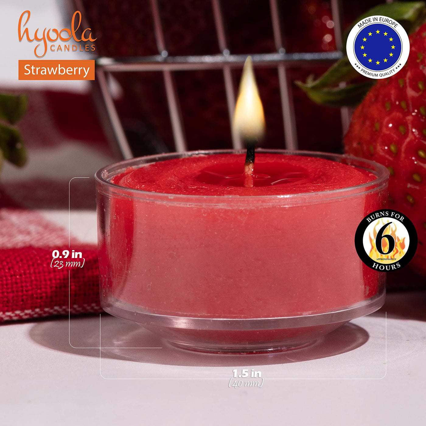 Hyoola Scented Tealight Candles - Clear Cup - Strawberry Tealight Candles Scented - 6 Hour Burn Time - 15 Pack - European Made