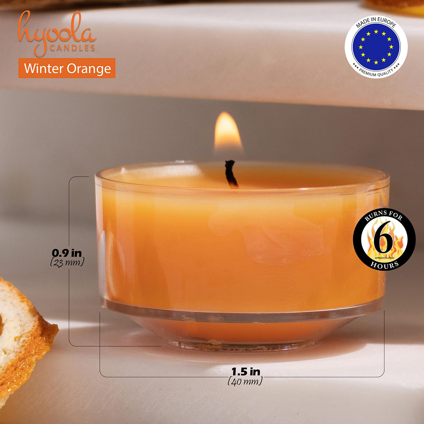 Hyoola Scented Tealight Candles - Clear Cup - Winter Orange Tealight Candles Scented - 6 Hour Burn Time - 15 Pack - European Made