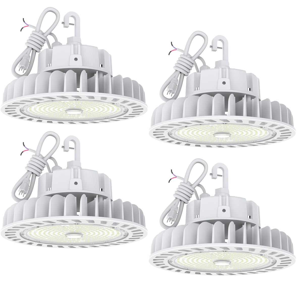 Q: What is included in the purchase of HYPERLITE High Bay LED Lights?A: When you purchase the HYPERLITE High Bay LED Lights, you receive the dimmable LED lights, safety wires, an easy-to-hang hook, and a standard US plug with a 5-foot cable for convenient installation.