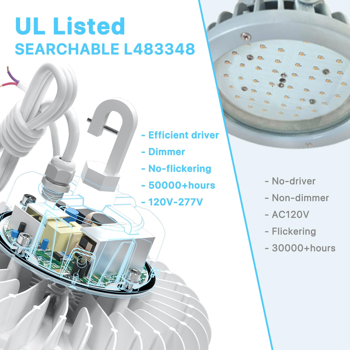 - **Energy-Efficient Performance**: Constructed with a robust pure aluminum cold-forged design, this high bay light ensures excellent thermal transfer, prolonging component life and preventing damage. It also features dimmable functionality, allowing you to adjust brightness to suit your needs.