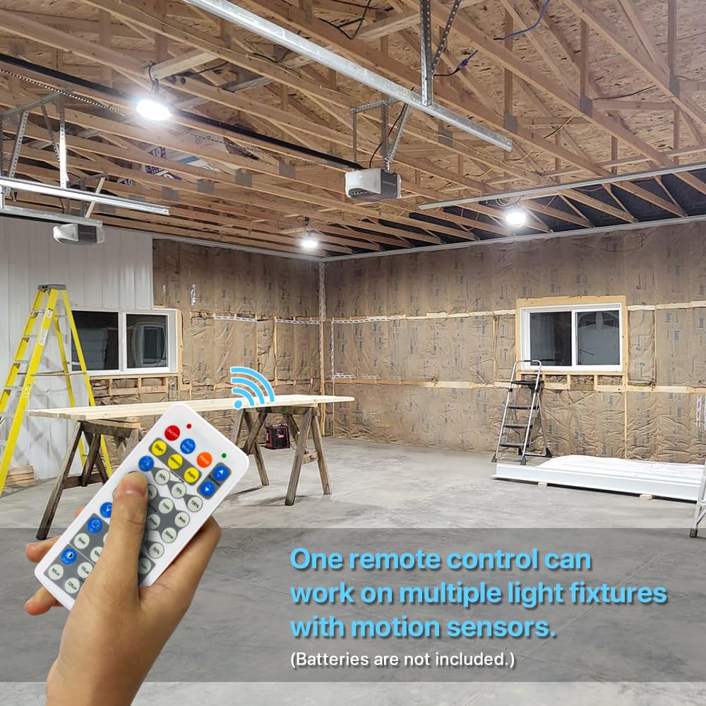 Q: How does the motion sensor work on this high bay light?A: The motion sensor on the HYPERLITE high bay light is designed to activate the lights for 30 seconds upon detecting movement, such as people or vehicles. If no movement is detected, the lights will automatically turn off after 30 seconds, enhancing convenience and energy efficiency.