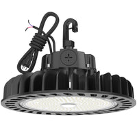 Q: What are the customizable options available for the HYPERLITE UFO LED High Bay Light?A: The HYPERLITE UFO LED High Bay Light offers 9 customizable options in one fixture, allowing you to adjust both the wattage (200W, 150W, or 100W) and the color temperature (4000K, 5000K, or 6000K) during installation.