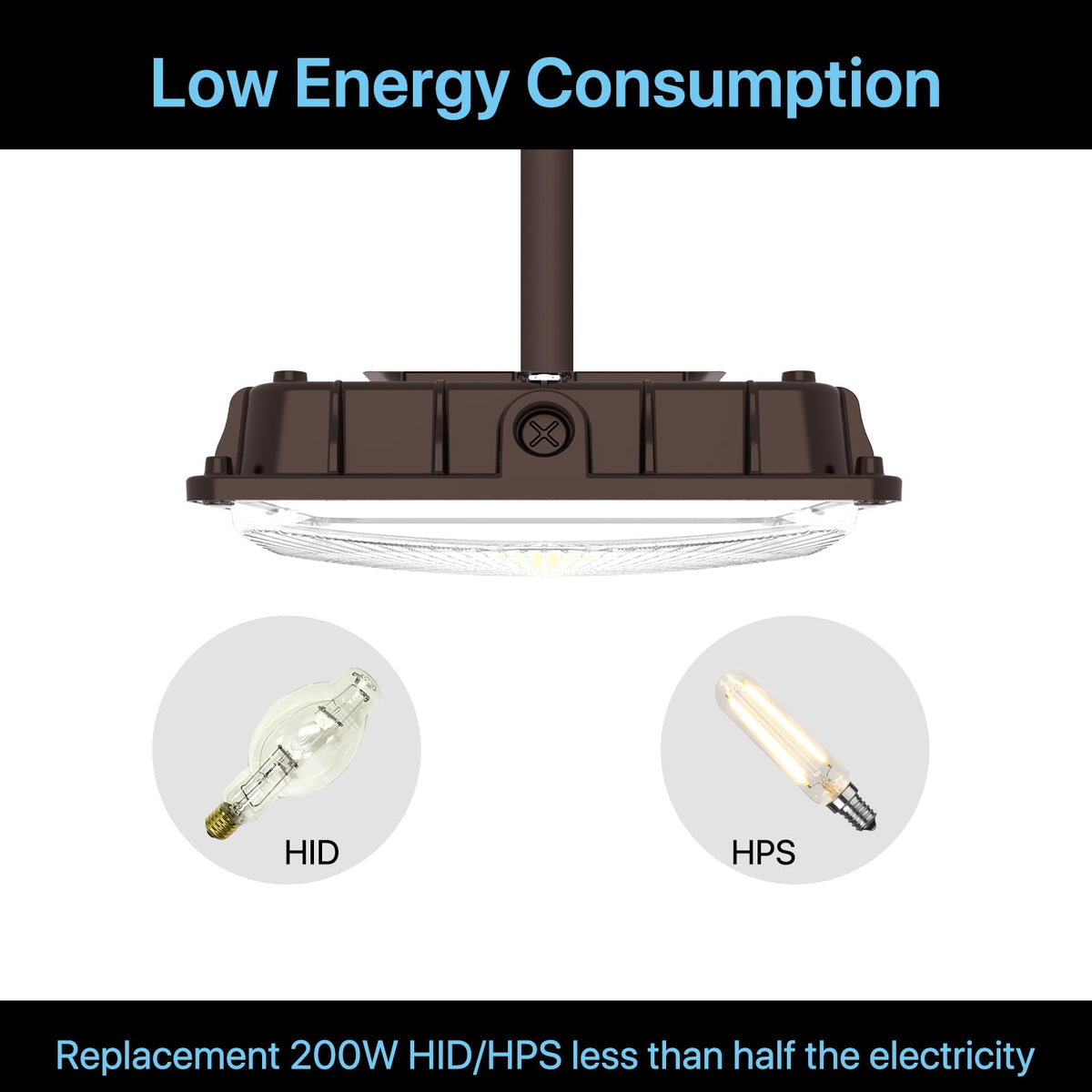 Energy Efficient - Achieves up to 80% energy savings compared to traditional 200W MH or HID lights, creating a quieter and cooler lighting environment.