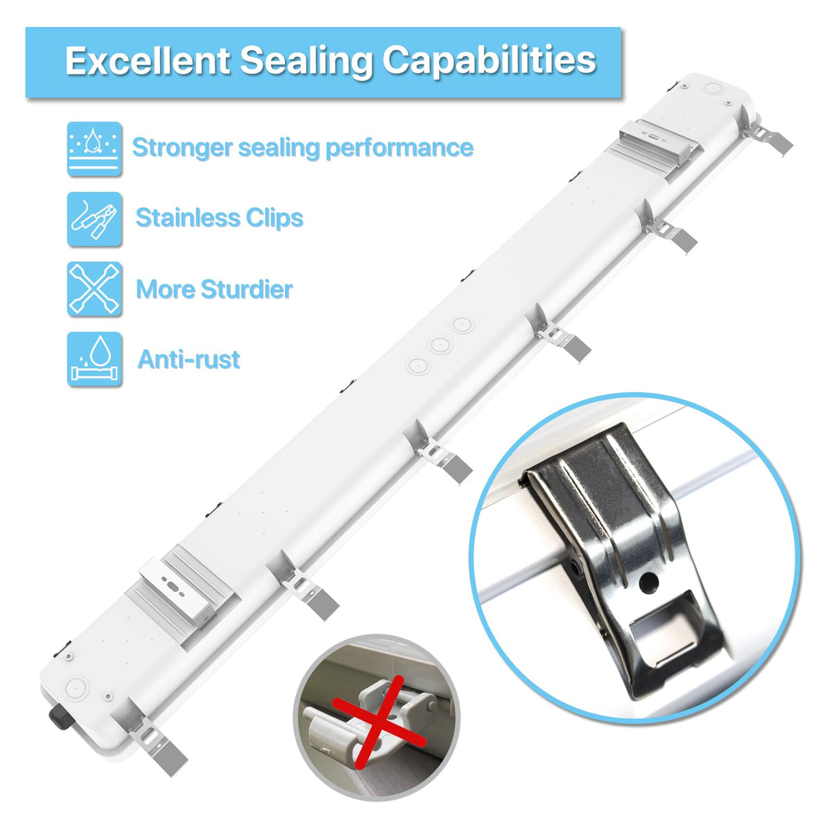 - **IP65 Grade & Wide Application:** With its dustproof and waterproof design, this 4ft LED vapor-tight light is perfect for a variety of environments, including garages, workshops, barns, cold storage (-22°F to 113°F), outdoor corridors, warehouses, and farms.