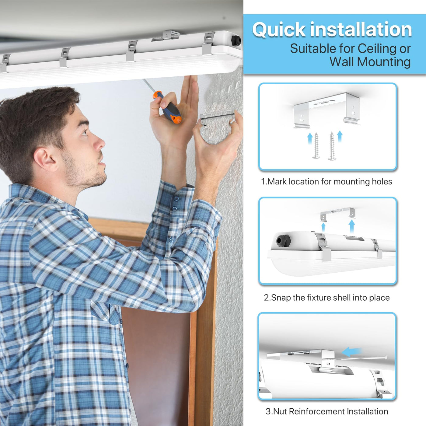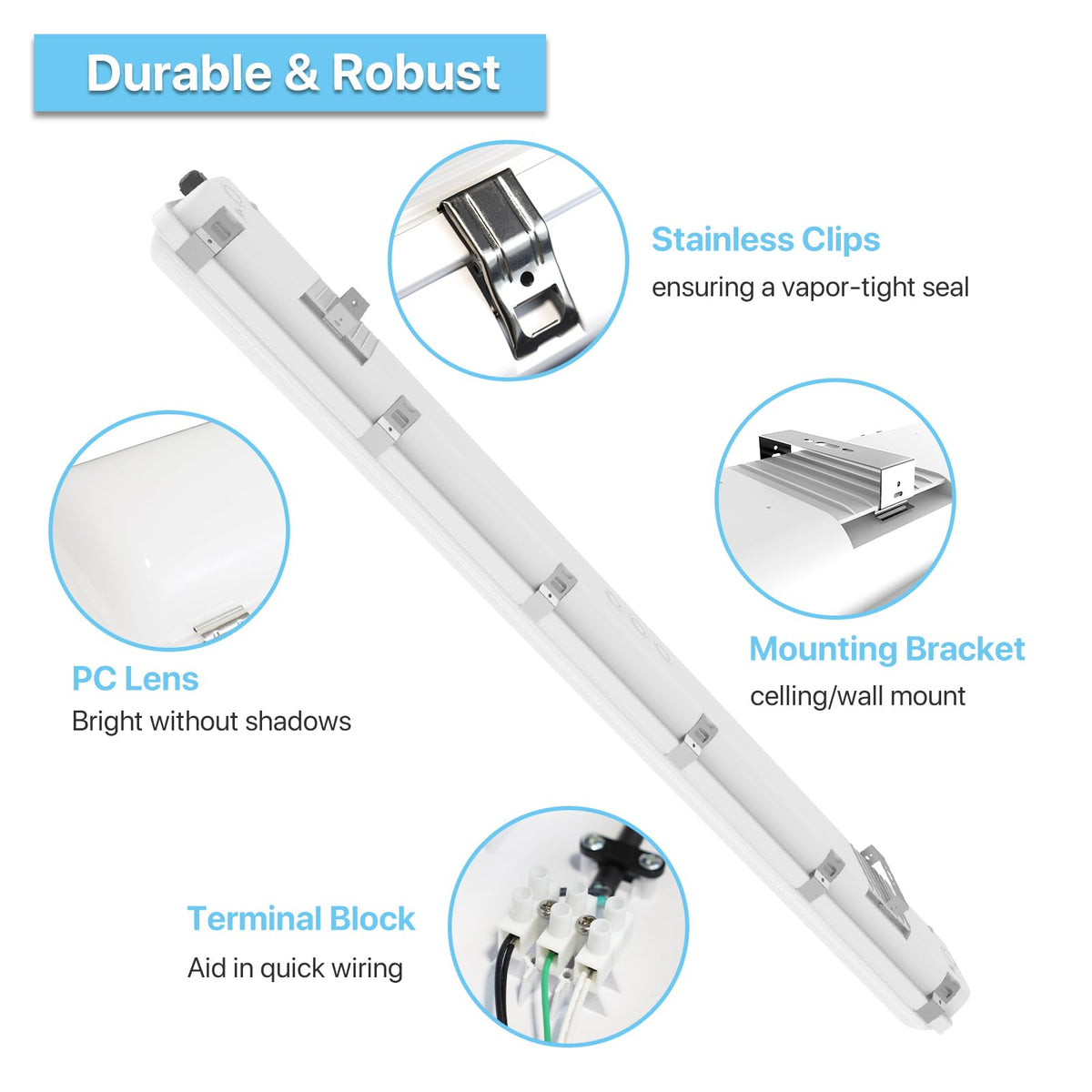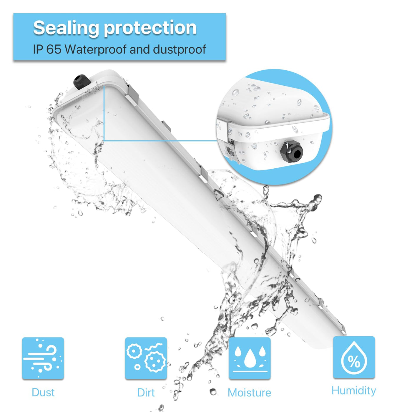 - **Durable and Versatile:** Rated IP65, this light is dustproof and waterproof, making it suitable for outdoor corridors, barns, kitchens, and cold storage (-22°F to 113°F).