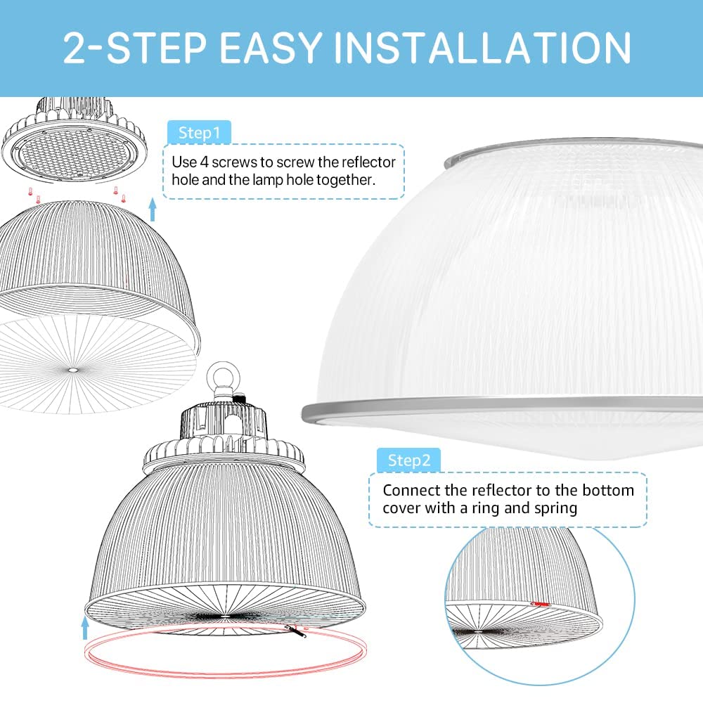 Quick Two-Step Installation: Easily install the reflector in just two minutes! Secure the cover with 4 screws, then attach the bottom using the iron ring and spring.