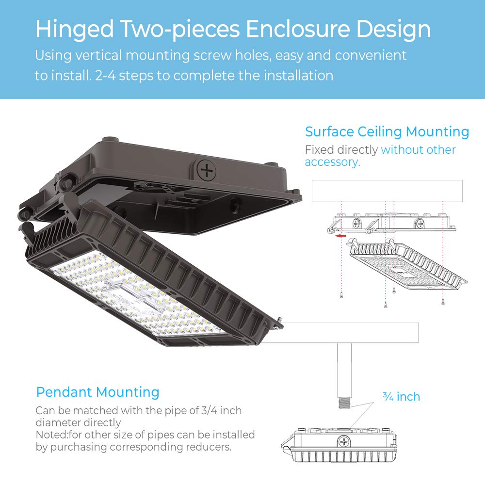 Engineered to last, this LED canopy light boasts a lifespan of up to 50,000 hours, ensuring reliability for years to come. Make the switch from metal halide to LED and experience significant savings on your electrical bill. The versatile design allows for use in a variety of environments including carports, shops, workshops, garages, basements, gas stations, and more.