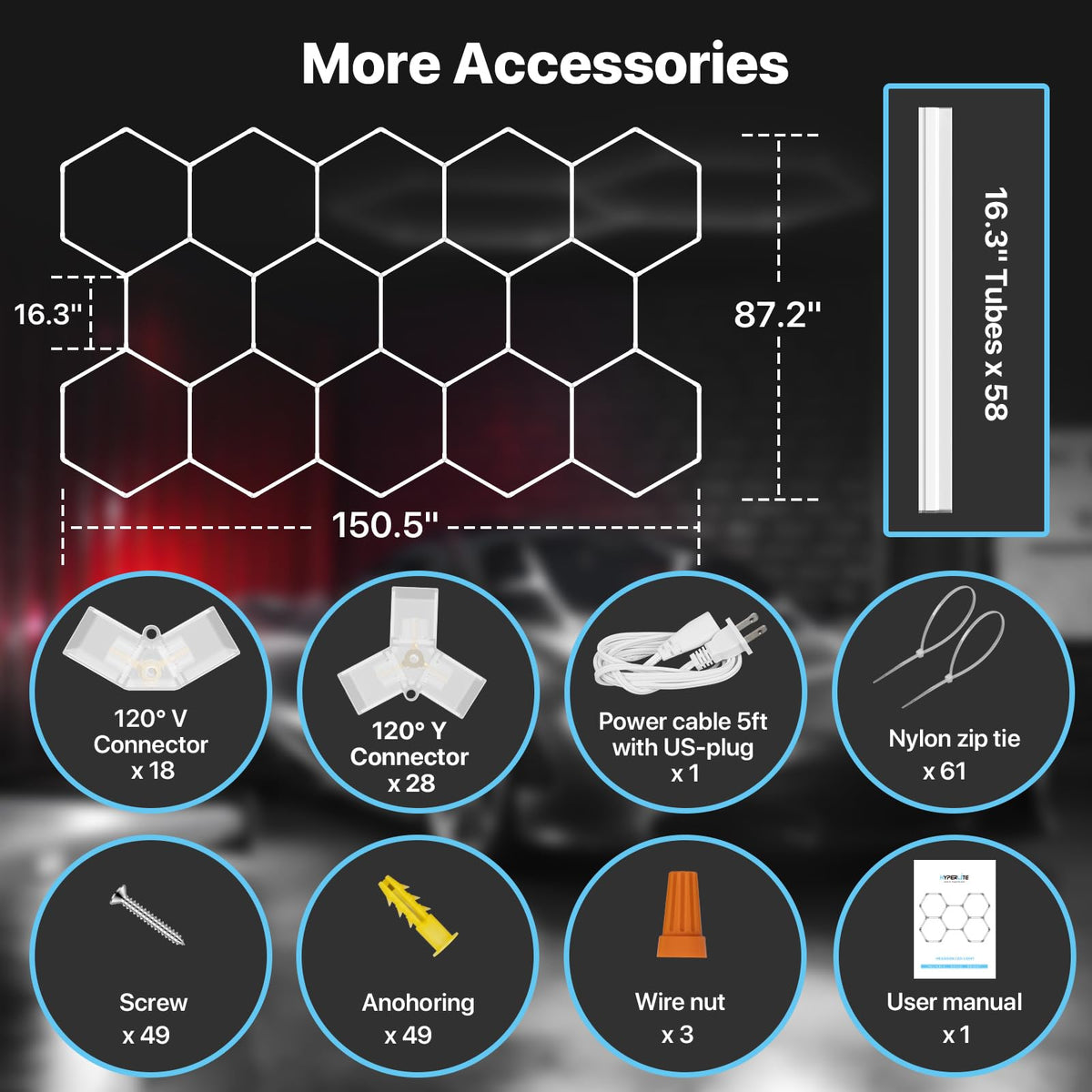Transform your garage, studio, or workspace with the HYPERLITE Hexagon Garage LED Light. Experience bright, customizable lighting that meets all your needs while ensuring safety and easy installation. Enjoy a well-lit environment that enhances productivity and efficiency in your daily activities.