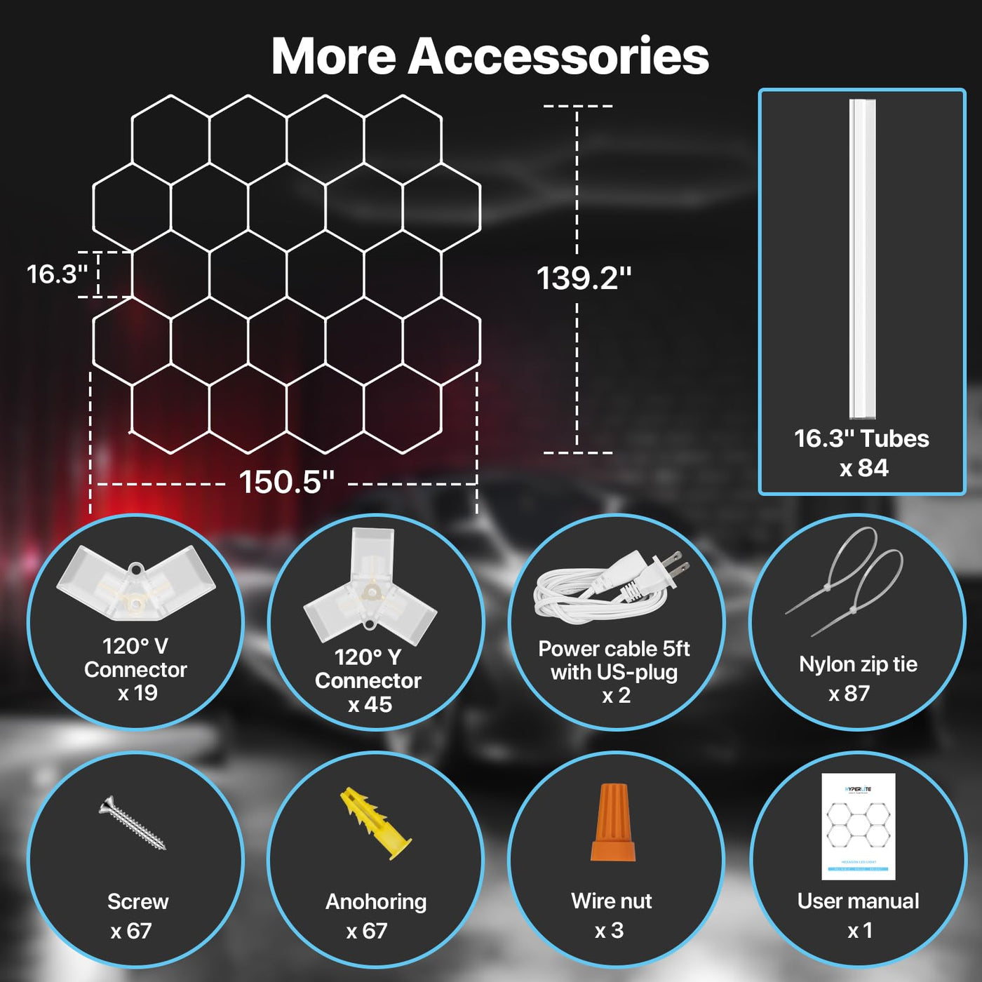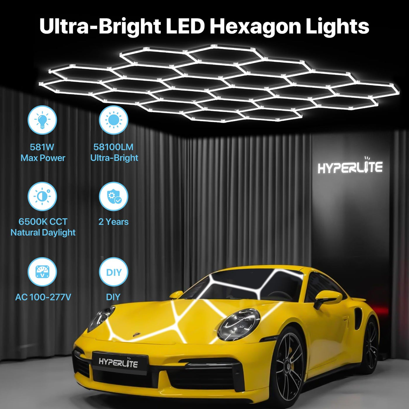 Hexagon Led Lights Diy Diversity Installation Effect: Tubes Can Be Installed Into Cool Light Shapes According To Personal Preference, Creating The Perfect Cool And Premium Ambience For Your Space. If You'Re Looking To Light Up Your Garage, Or You Have A Shop That Needs Some Dressing Up, These Led Hexagon Lights Are The Answer. These Hexagon Lights Are Extremely Popular In The Automotive Industry For Dealerships, Detailing Shops, Car Washes, Vinyl Wrap Shops, And Paint And Auto Body Shops. They Are Also Popular In Retail Shops, Gyms. Hyperlite Hexagon Garage Lights Is A Top Quality Industrial Luminaire With An Aesthetically Pleasing Design, And We Provide You And Your Company With 100% Free Services, If You Have Any Questions About Our Hexagon Ceiling Light And Contractor Services, Feel Free To Contact Us!