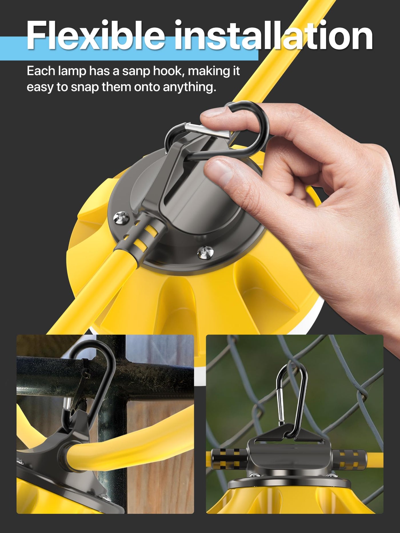 Constructed with commercial-grade materials, these string lights feature durable 18AWG wire and a sturdy housing that can withstand shocks and harsh conditions. The lights are equipped with efficient lamp beads that deliver ultra-bright 5000K cool white light, offering clarity similar to natural sunlight. The flexible and portable design allows for easy installation without the need for tools, making setup quick and convenient.
