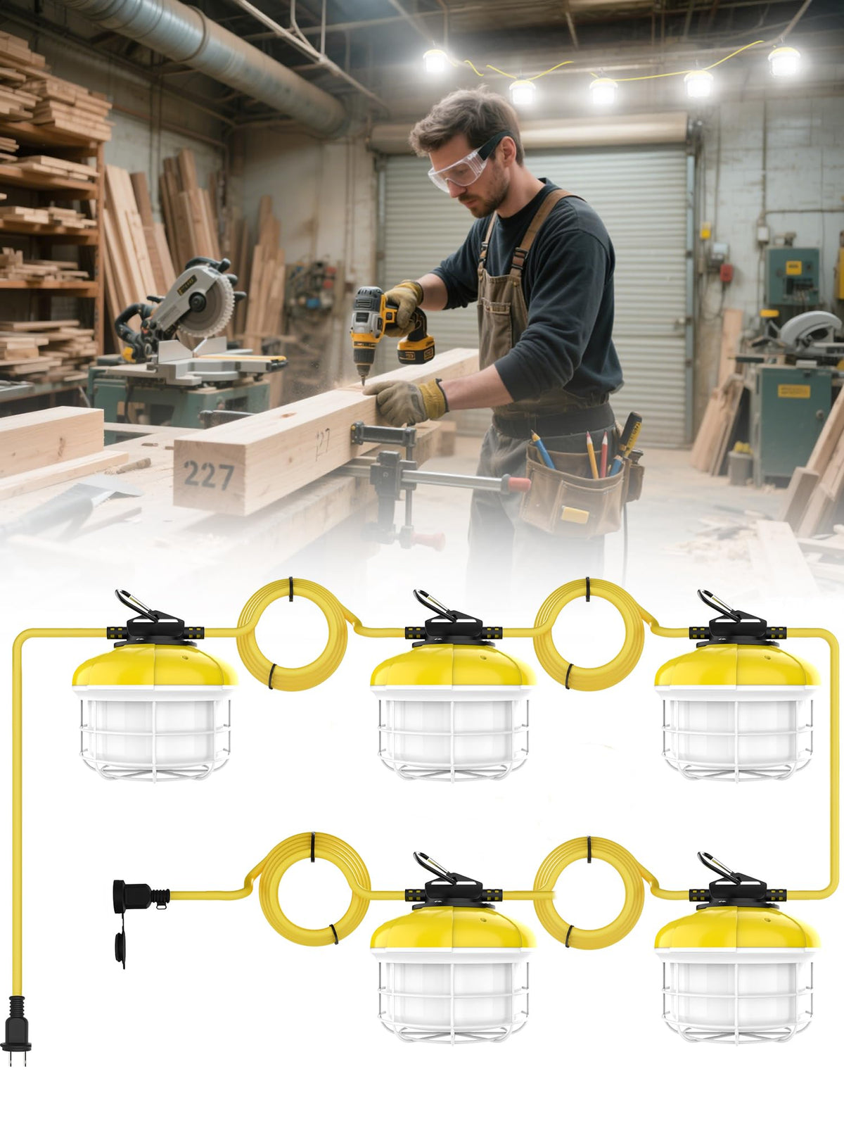 The HYPERLITE 50FT LED Construction String Lights are designed to provide reliable and efficient lighting for various settings, including job sites, workshops, and outdoor environments. These lights are ideal for both professional and personal use, ensuring excellent visibility and safety in any work area.