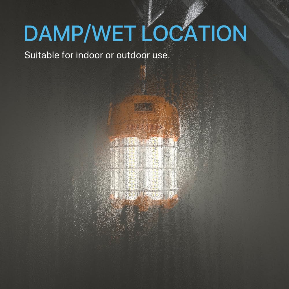 Hyperlite Led Temporary Work Light 60W 7500Lm 200W Hid/Hps 5000K, Portable Hanging Construction Light With Stainless Steel Safet