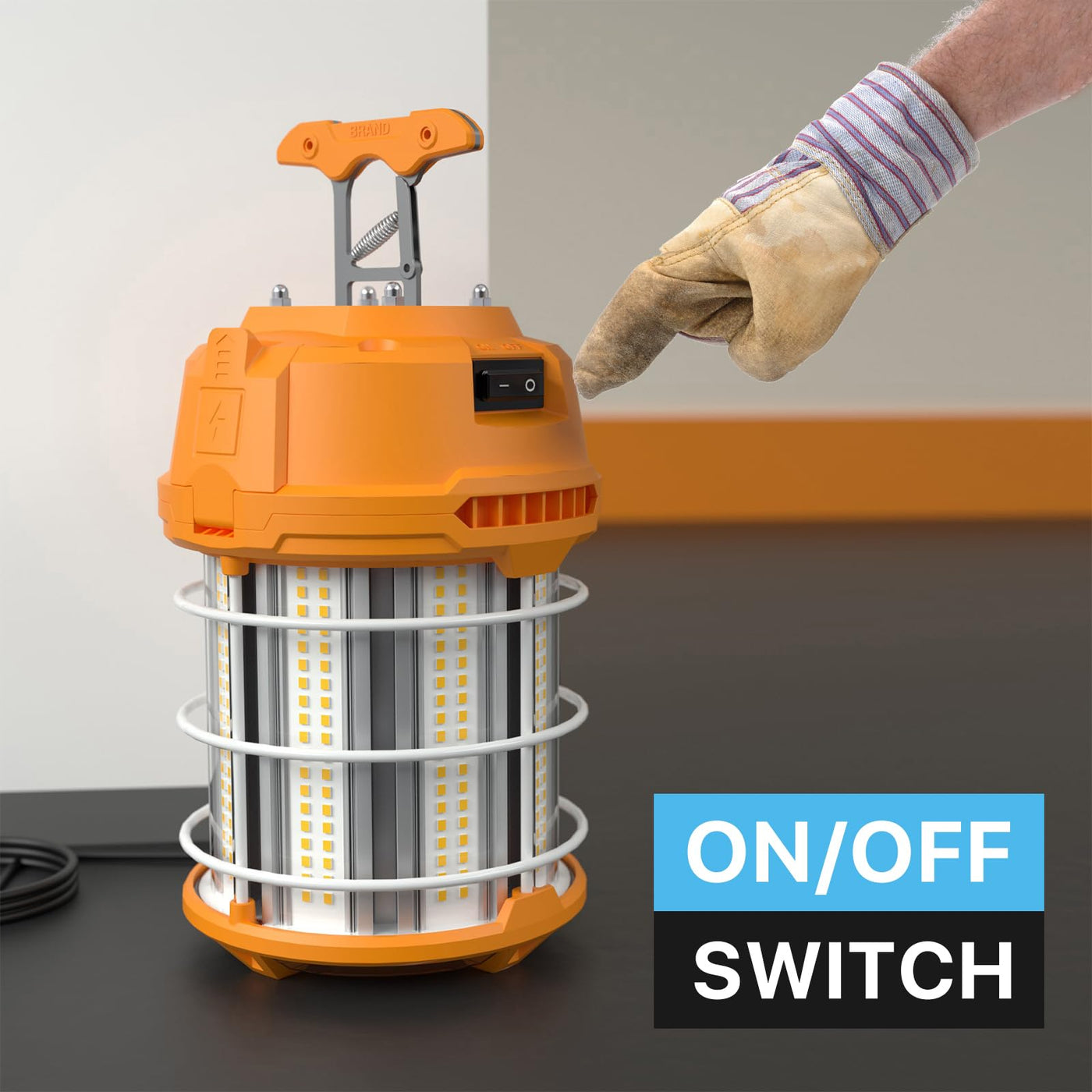 Q: Is the HYPERLITE LED work light portable and easy to use?A: Absolutely! The work light features a T-shaped top hook for easy hanging and a lightweight design for hand-carrying. It also includes a 10ft power cord with a standard 120V plug and an ON/OFF switch for convenient operation.
