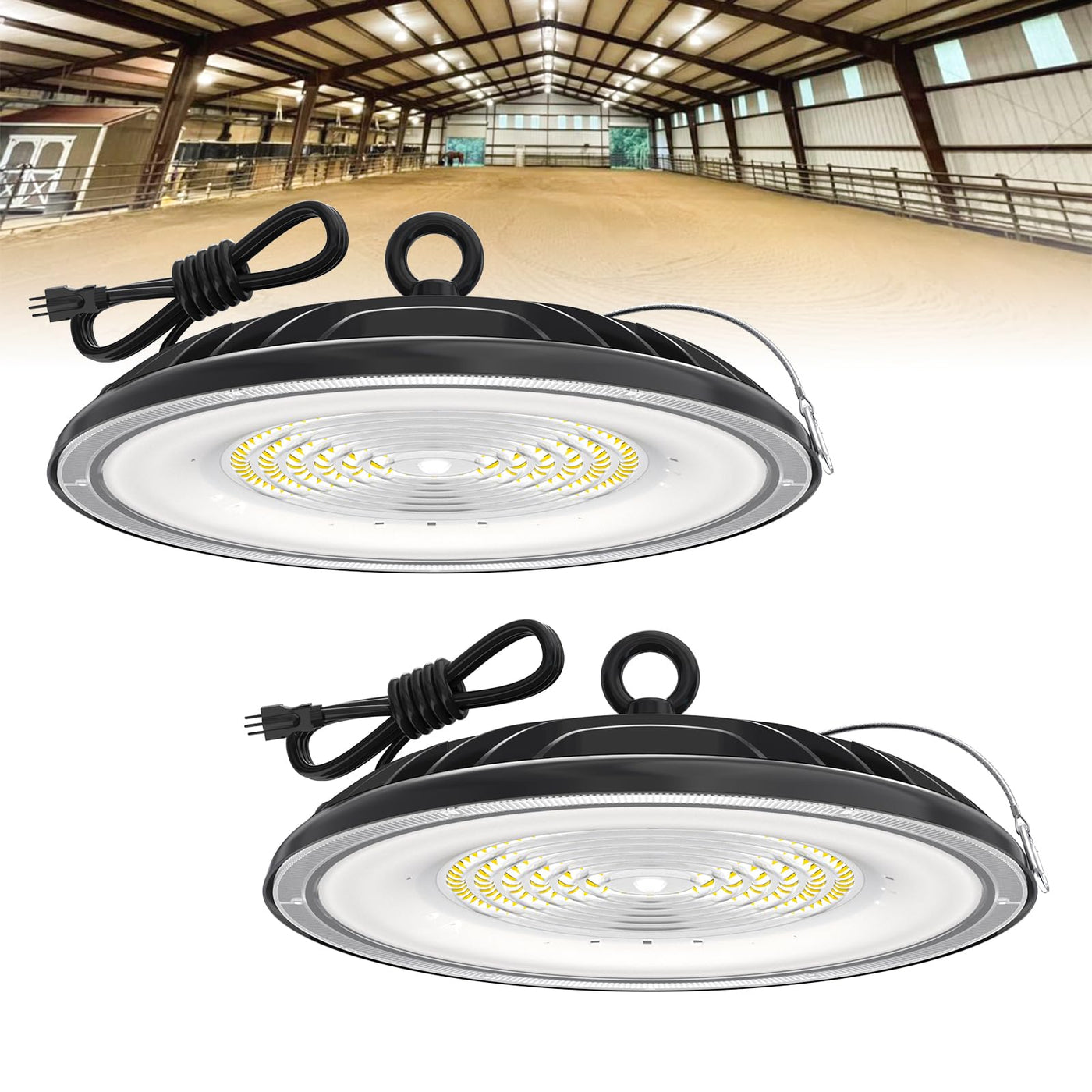 HYPERLITE UFO High Bay Lights Commercial: 2-Pack 250W High Bay LED Shop Lights for Workshop - Waterproof UFO Light for Damp Plac