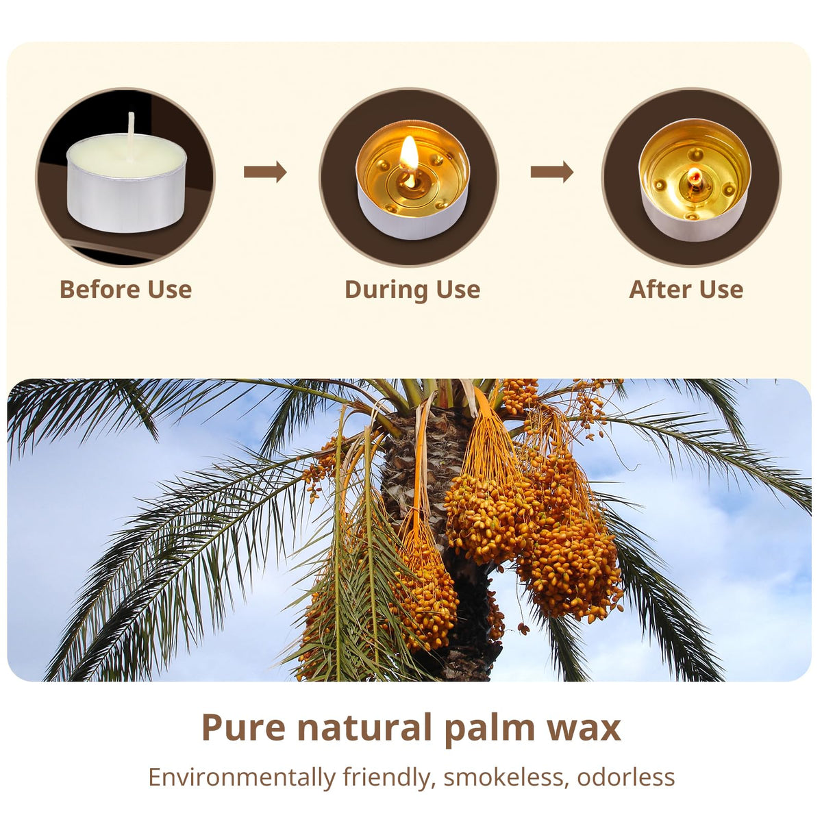 Hypmis Tea Lights Candles 100 Pack,Unscented White Votive Bulk,6 Hours Burning Time,Long Lasting Palm Wax (Non-Paraffin), Clean Burn With Smokeless Tealights For Christmas,Thanksgiving,Homemory