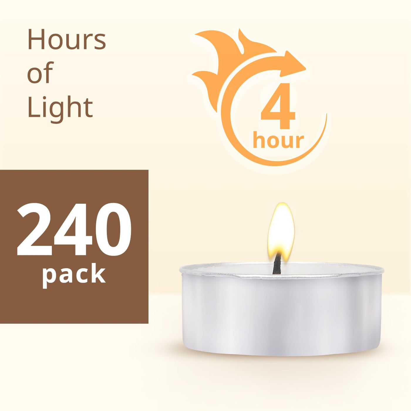 Tealight Candles 4 Hours Clean Tea Candles 240 Pack, Long Burning White Unscented Tea Candles for Weddings, Home, Pool,Shabbat