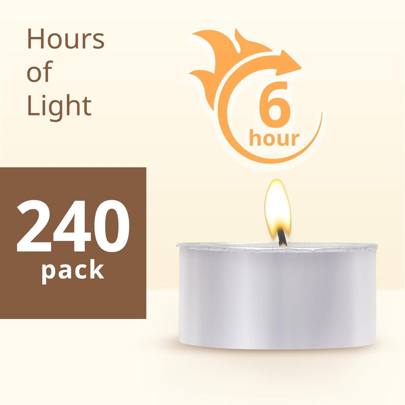Tealight Candles 6 Hours Clean Tea Candles 240 Pack, Long Burning White Unscented Tea Candles for Weddings, Home, Pool,Shabbat