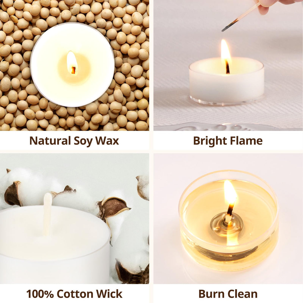 Hypmis Unscented Soy Tea Lights Candles 50 Pack Bulk, 4 Hours Long Burning White Tea Lights,Non-Paraffin, Smokeless, Mini Tealight Votive Candles For Wedding, Table Centerpiece, Party, Christmas