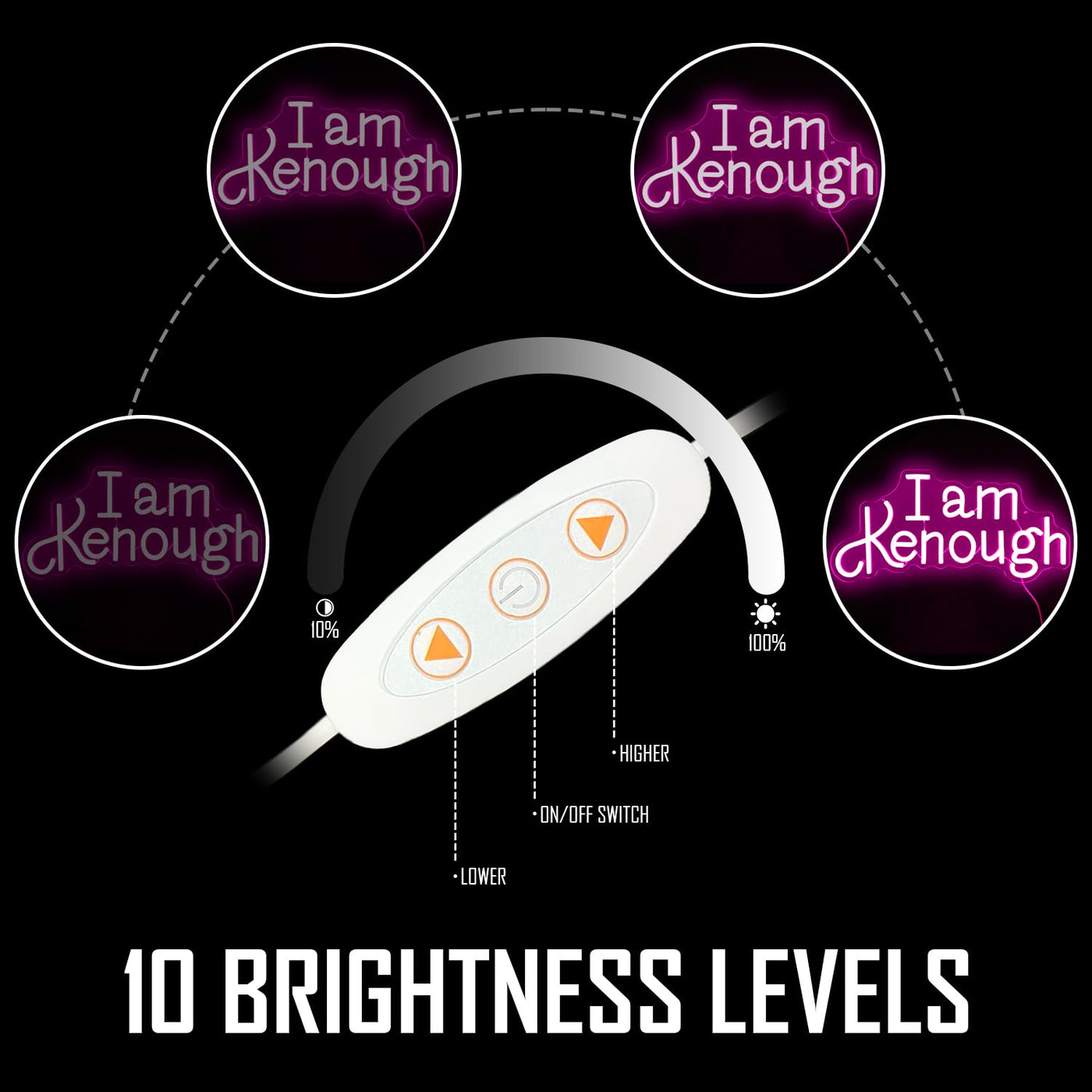 I am kenough neon sign:Led neon signs is composed of pink beautiful letters, creating a pink and romantic atmosphere for your room.Our neon light sign can light up your room with comfort and warm light.This also be the ideal decoration for your family or party | High -quality:Our neon sign for bedroom is composed of acrylic boards and LED lamp beads.With 200cm/80inch -length USB cable. Our light up signs for wall decor has a low energy consumption and long life. There is no risk of glass crushing and harmful substances. You can use it safely | Easy to use:As long as there is a USB interface, you can use it, which is very convenient.Neon led sign has the adjustable switch,and you can adjust the strength of the light as needed.Two pre -drill holes on the light signs wall decor acrylic plate are easy to suspend decoration, or you can also choose to put it on the table | Best choice:Led neon light sign is an ideal choice for your daughter, girlfriend, wife, bride, girl, child.This neon lights signs is also applicable to shopping malls, bars, cafes, windows, shops, restaurants, weddings, and party. Led light sign is also a great choice for family members or friends on the birthday, Christmas, weddings, graduation, Valentines Day, anniversary | Service:Our goal is to make you satisfied with our neon light decor.Therefore, if you have any questions, please contact us at any time