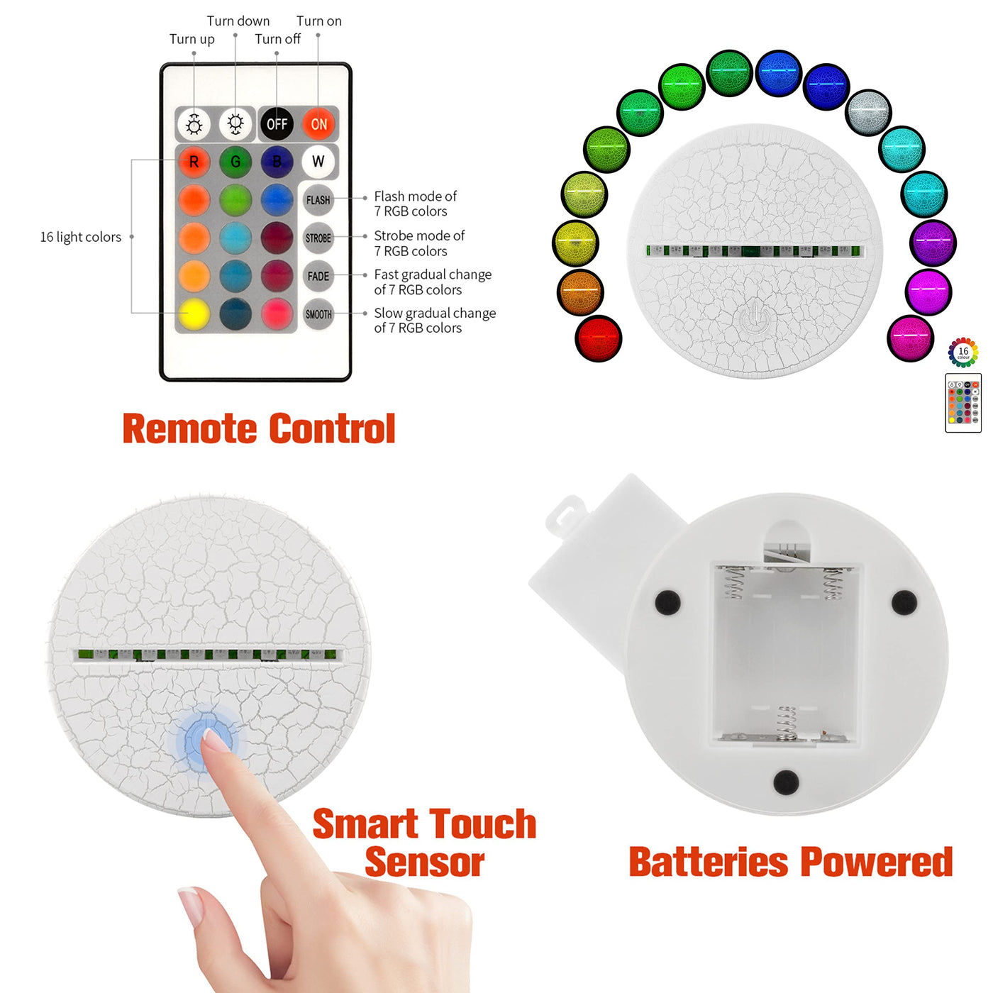 Made with 3D Laser Engraving Technology Can fixed one color or 7 colors auto gradual changing night lights -- red, green, blue, yellow, purple,cyan, white.