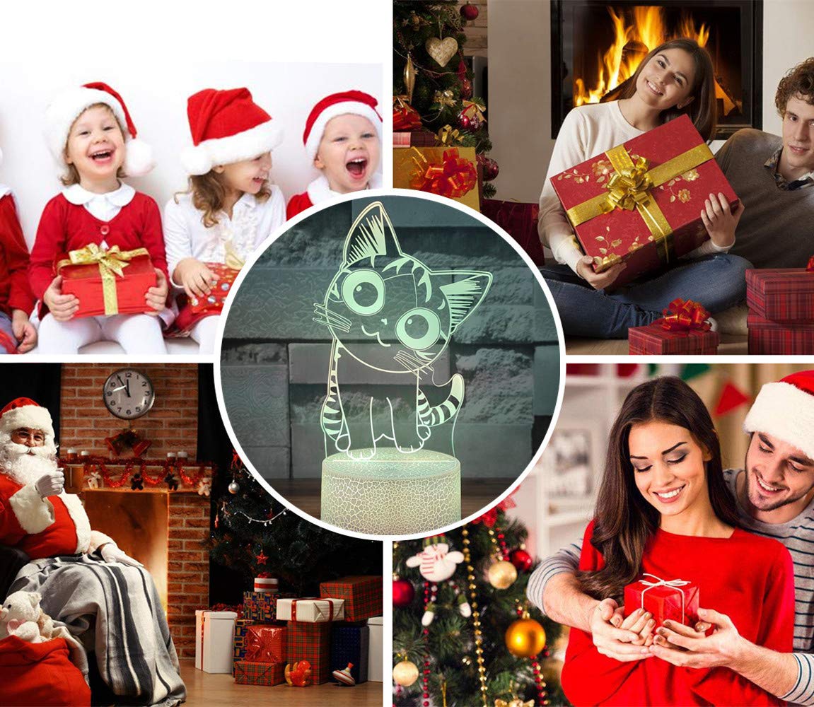 i-CHONY Cat Night Light for Girls,3D Optical Illusion Lamp 16 Colors Dimmable Led Light with Remote & Luminous Base,Cat Gifts fo