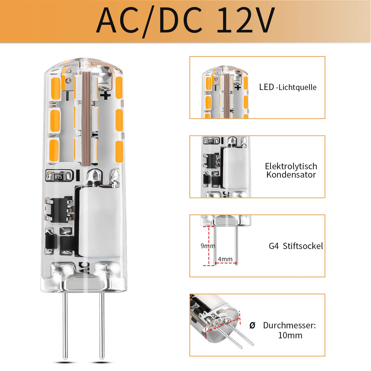 12V G4 LED bulbs for G4 lampholders, as a perfect replacement for G4 halogen lamps, the product has low power consumption, long service life, and a variety of color temperature options.