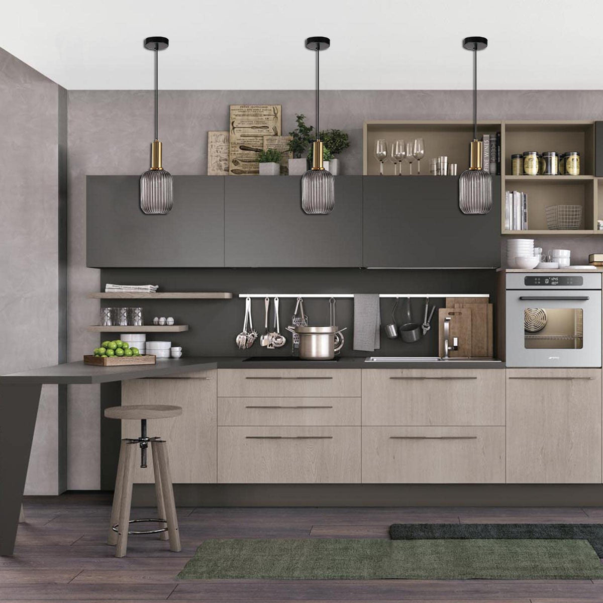 I-Xun Modern Pendant Light Fixtures For Kitchen Island, Farmhouse Striped Glass Pendant Lighting With Gold Socket, Stylish Ceili