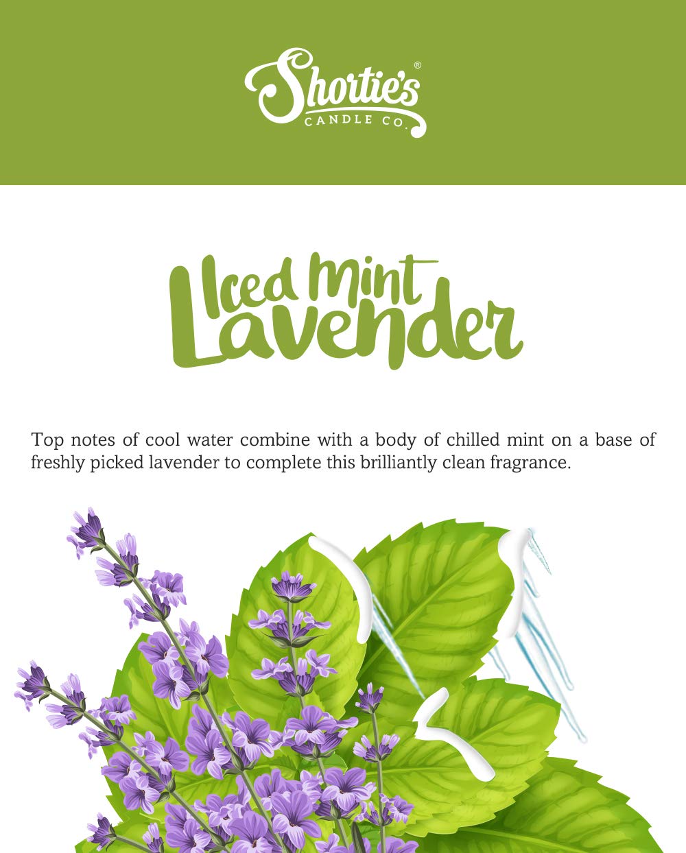 Q: What makes the Iced Mint Lavender scent unique?A: The Iced Mint Lavender scent combines top notes of cool water and chilled mint with a base of freshly picked lavender, creating a brilliantly clean fragrance that enhances any setting.