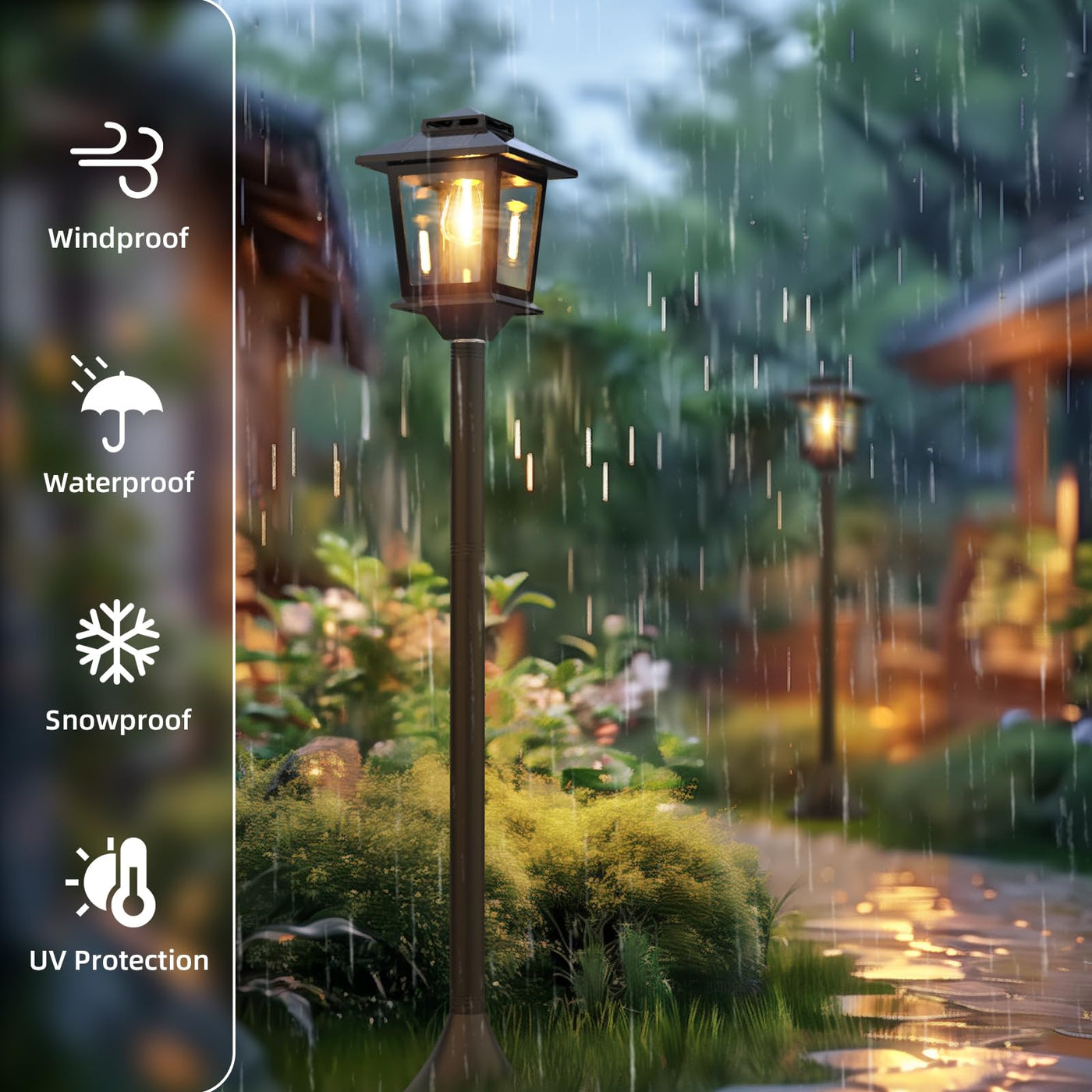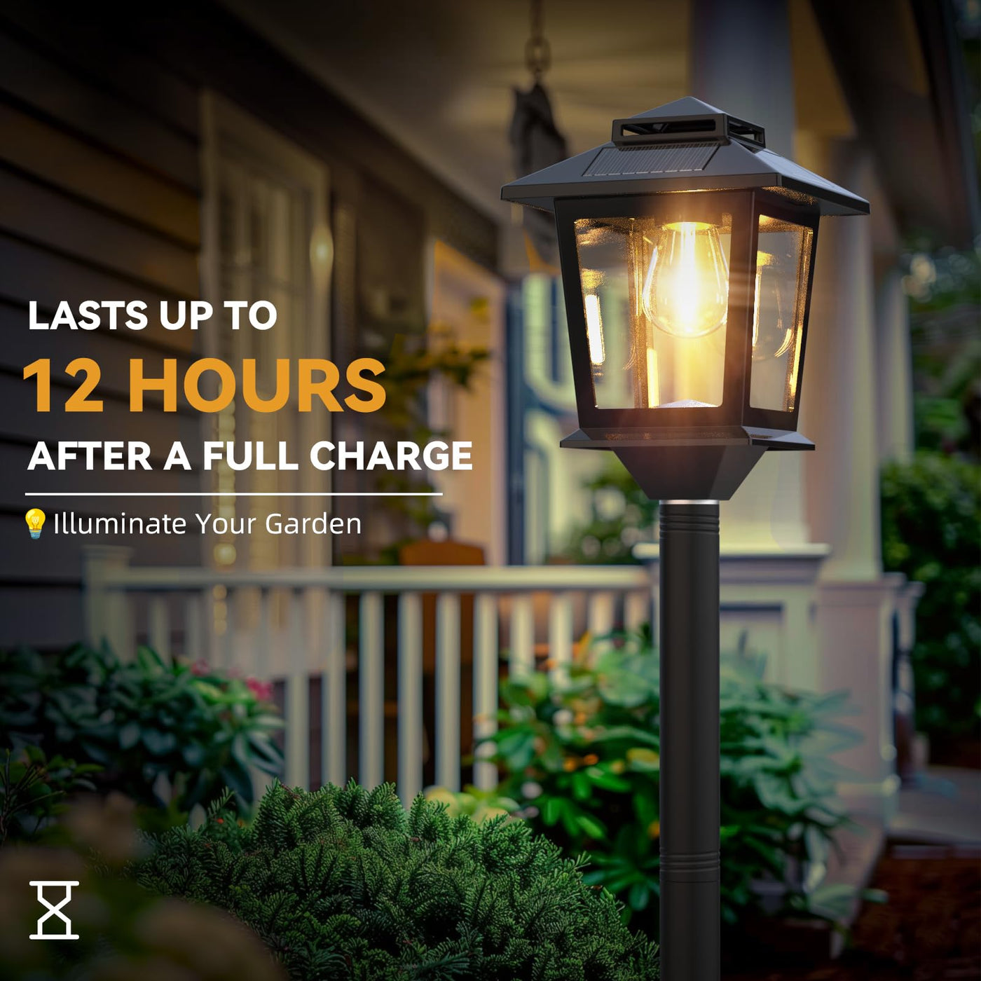 Icerona 64 Solar Outdoor Light Waterproof 2 Pack, Aluminum Glass Solar Lamp Post Light with Auto On/Off 3000K Warm White, Outdoo