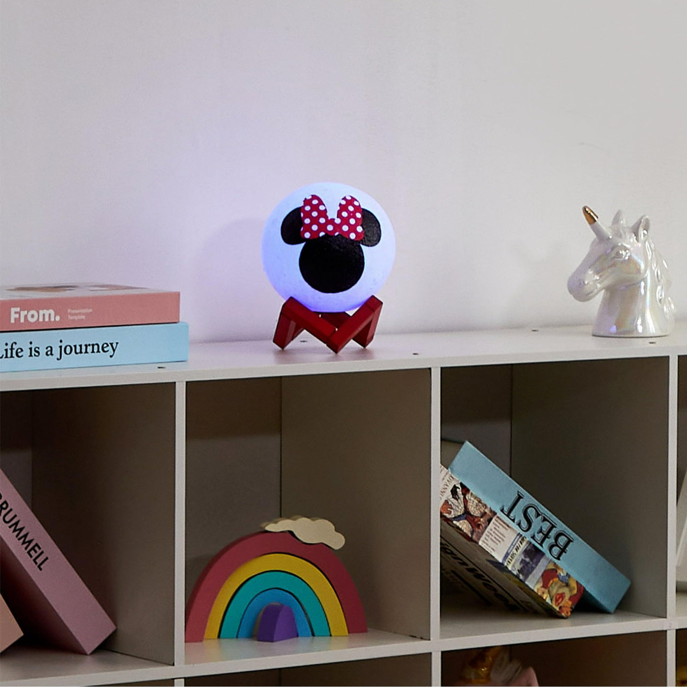 Q: Is the Minnie Mouse Moon Lamp suitable for small spaces?A: Yes, the Minnie Mouse Moon Lamp is designed with a compact size of 6 inches, making it perfect for tabletops, small rooms, or any cozy corner where you want to add a touch of Disney magic.
