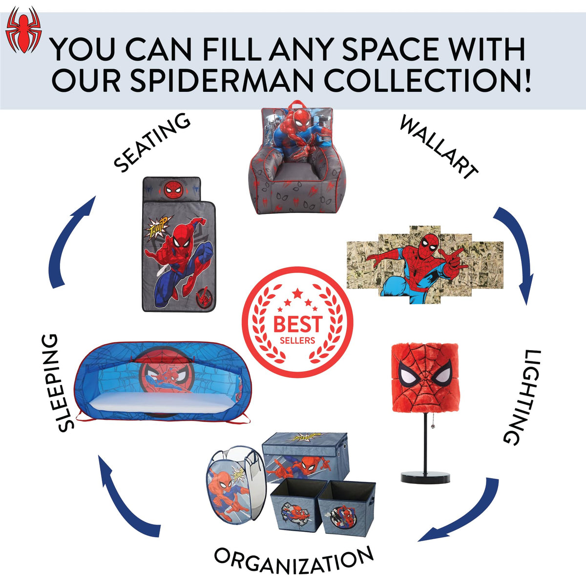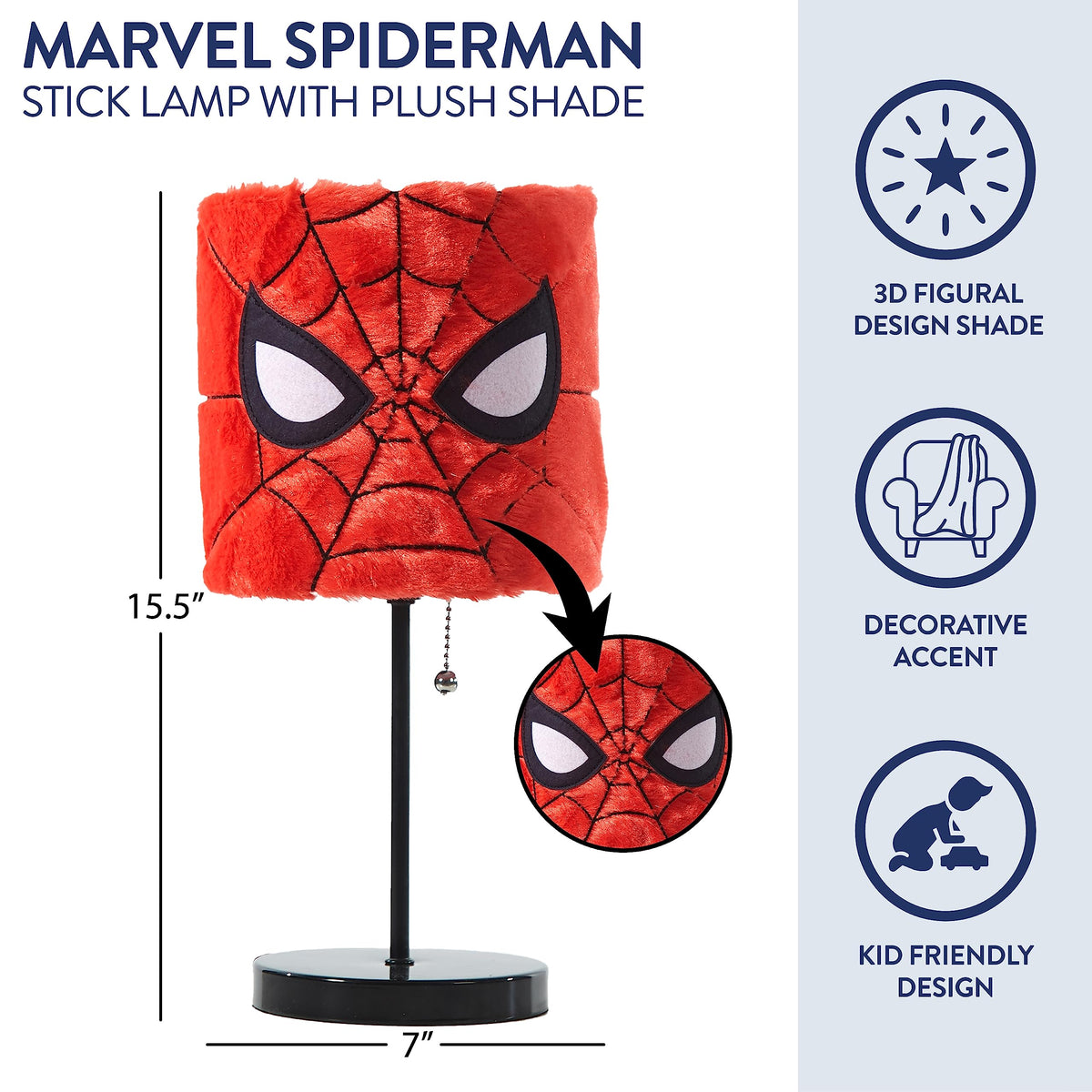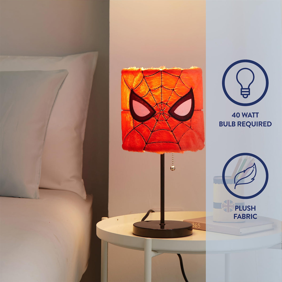 - ORIGINAL SPIDERMAN DESIGN: Adorned with a plush shade featuring the iconic superhero, Spiderman, this table lamp is a must-have for fans of all ages.