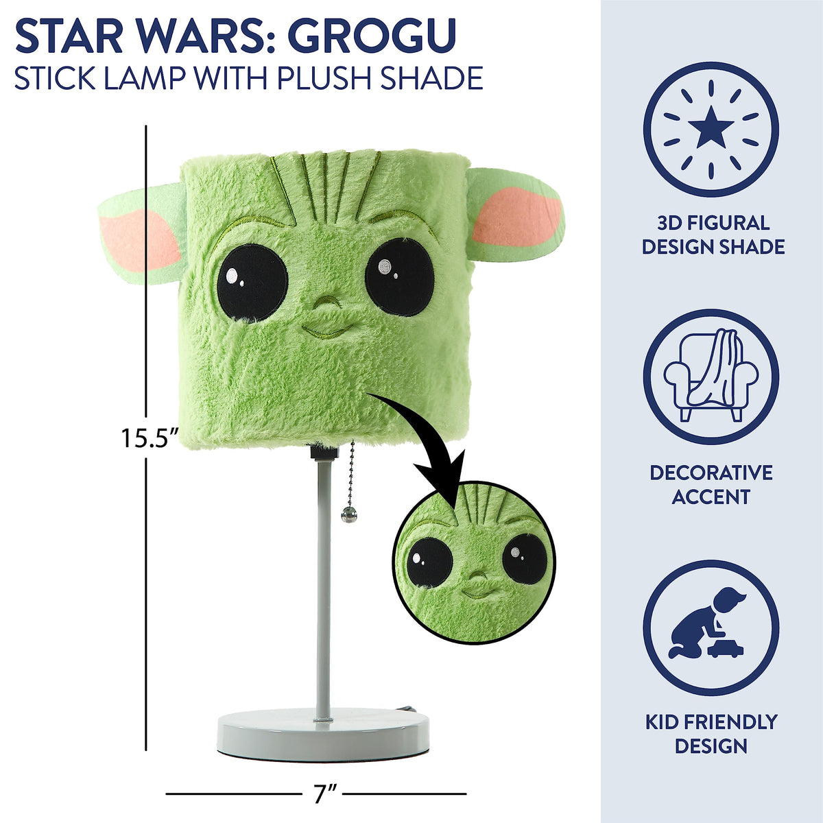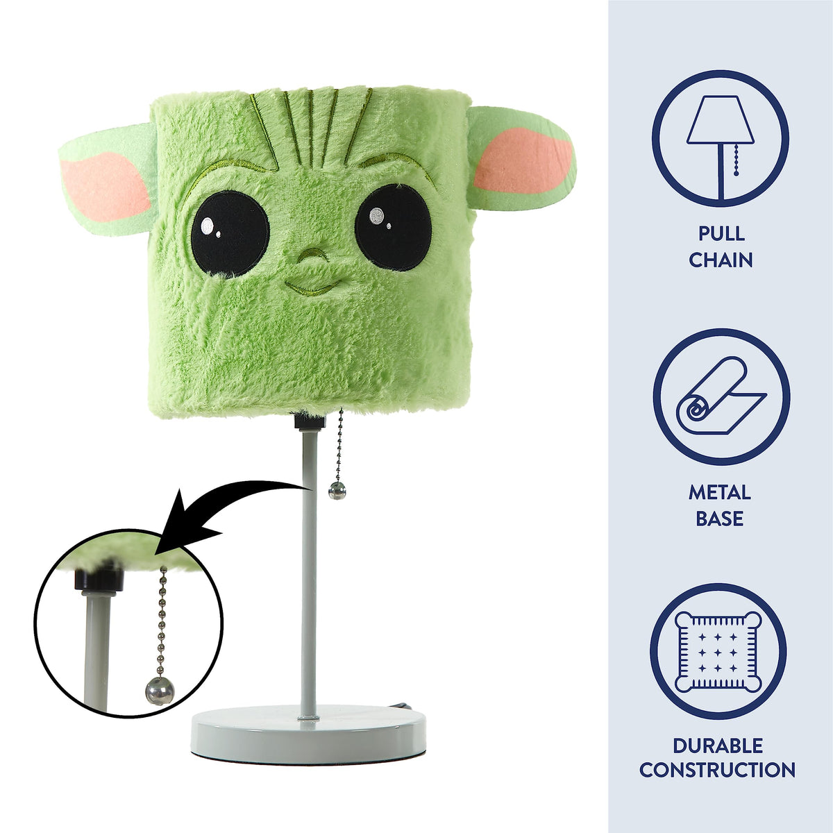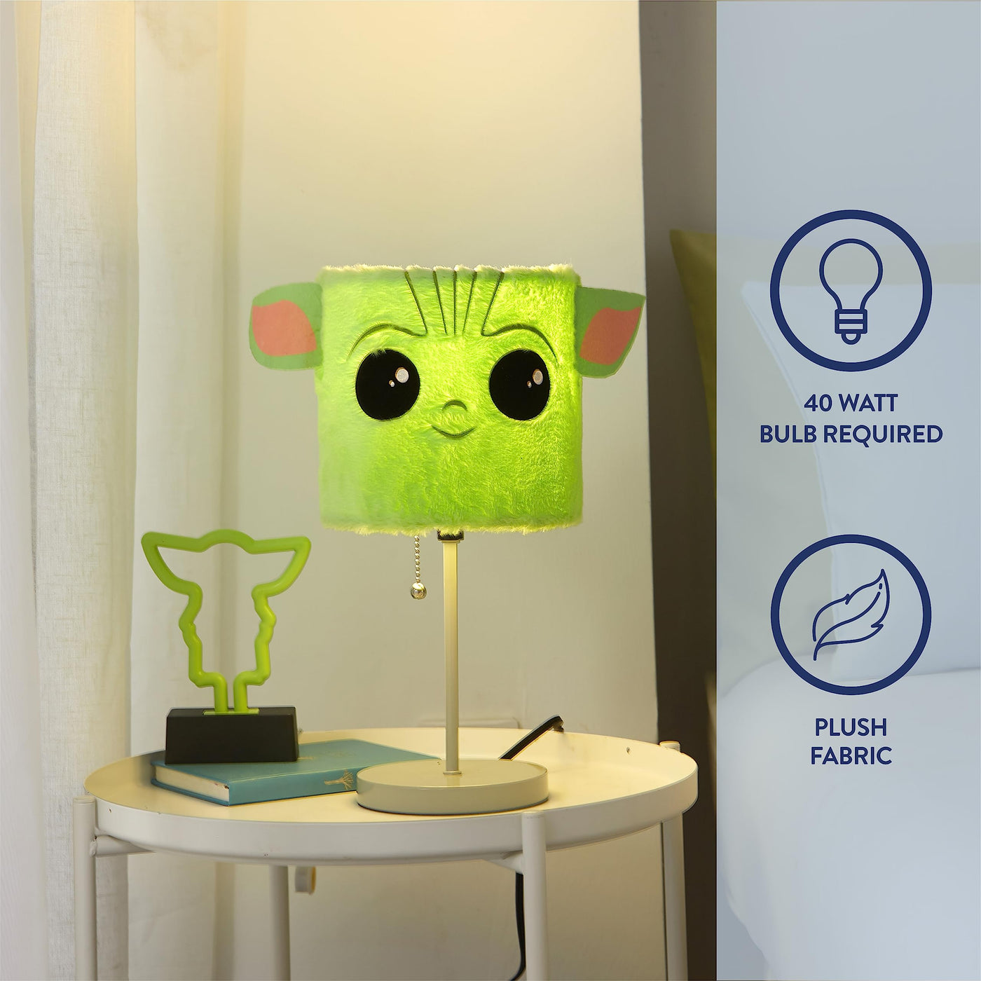 - ORIGINAL STAR WARS THE MANDALORIAN THE CHILD DESIGN: This table lamp features a plush shade adorned with the iconic "The Child" design, beloved by fans of all ages. Although he may resemble Baby Yoda, this lamp truly embodies the spirit of The Child.