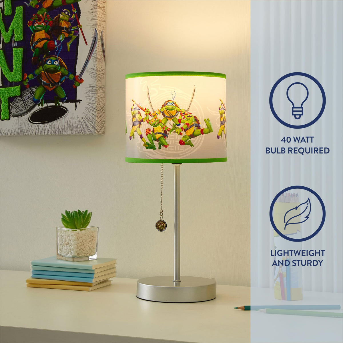 Idea Nuova Tmnt Mutant Mayhem Kids Table Lamp With Decorative Shade & Pull Chain