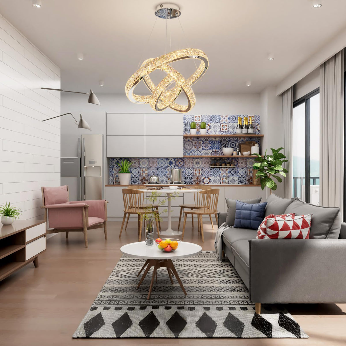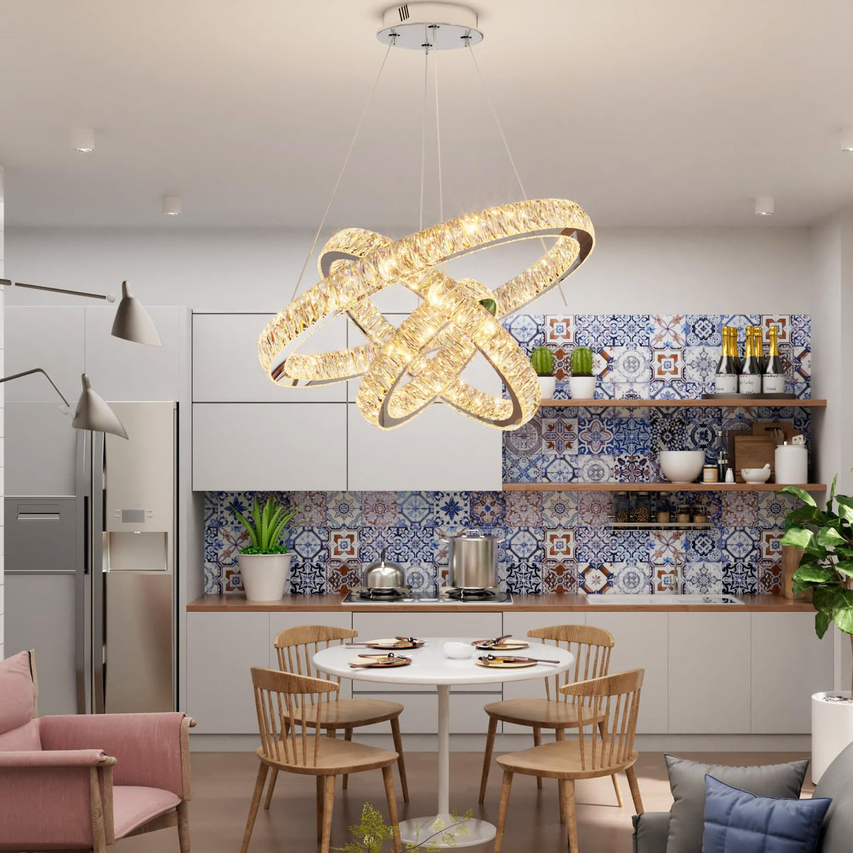 Idequy 3 Rings Crystal Chandeliers 32+24+16 Crystal Ceiling Light Fixture Pendant Lighting Hanging Lamp For Living Room Led Dimmable 3000-6000K