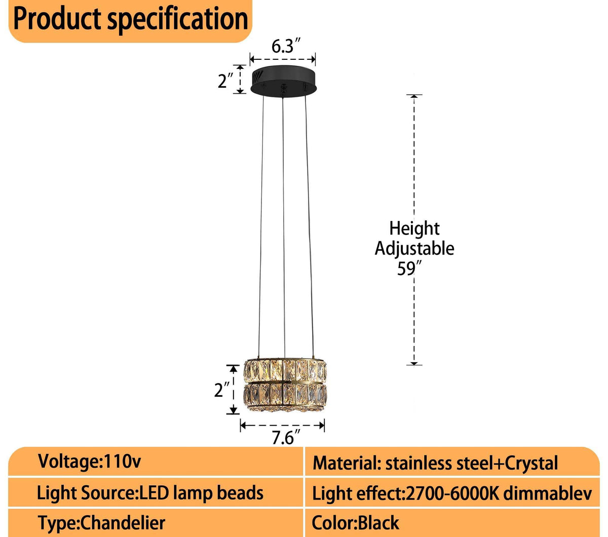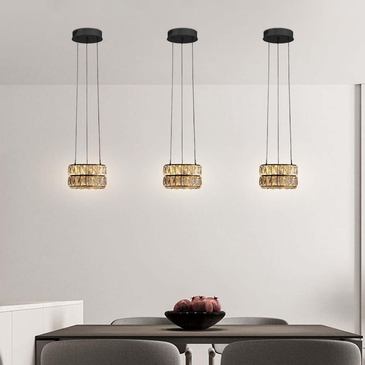 47.5 Inches Modern Led Dimmable Crystal Chandeliers Black Ring Chandeliers Adjustable Stainless Steel Ceiling Lights Rings Round Pendant Lighting for Living Room & Dining Room