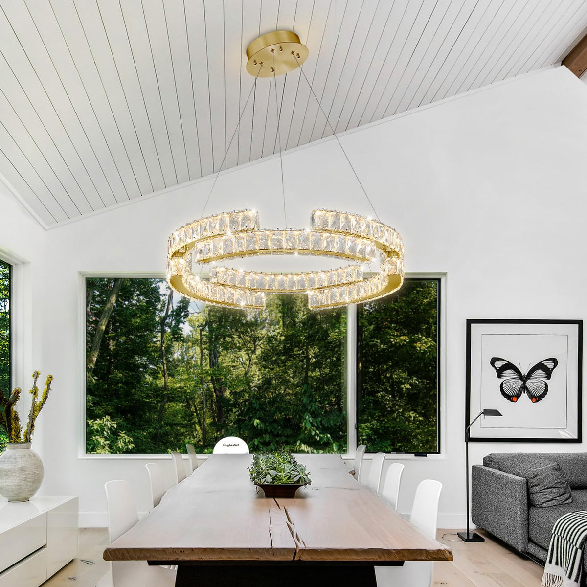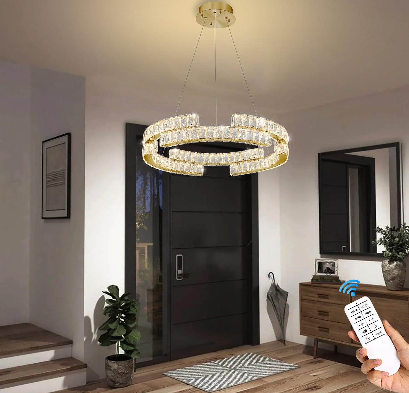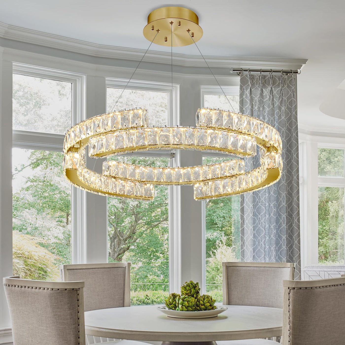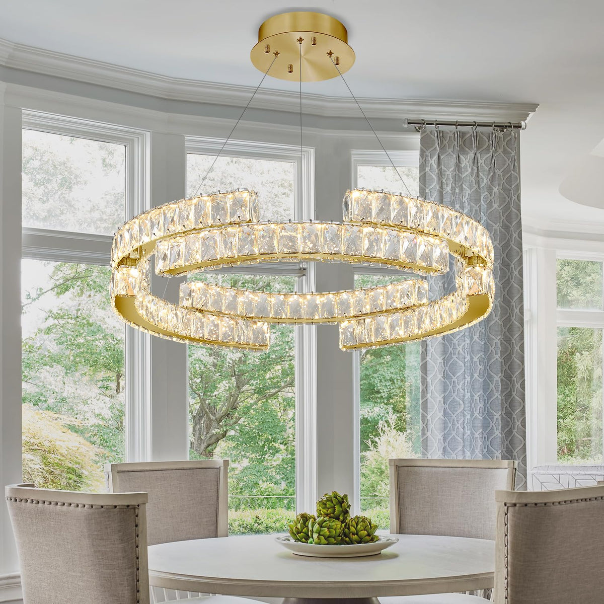 D40''+D27.5''+D15.7'' Modern Gold 3 Ring Crystal Chandeliers For Living Room Crystal Pendant Light Foyer Entrance Led Dimmable 3000-6000K Fixtures