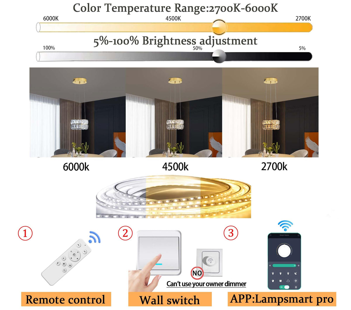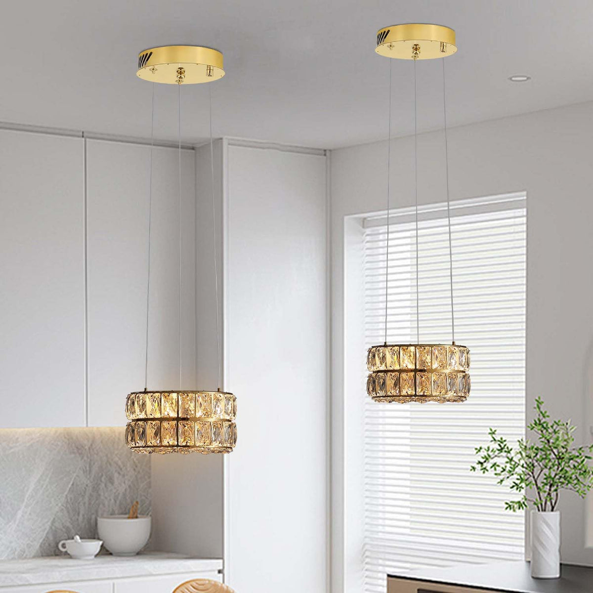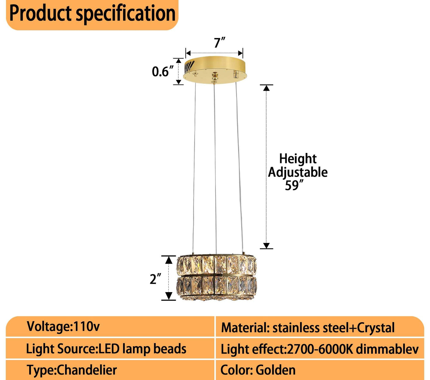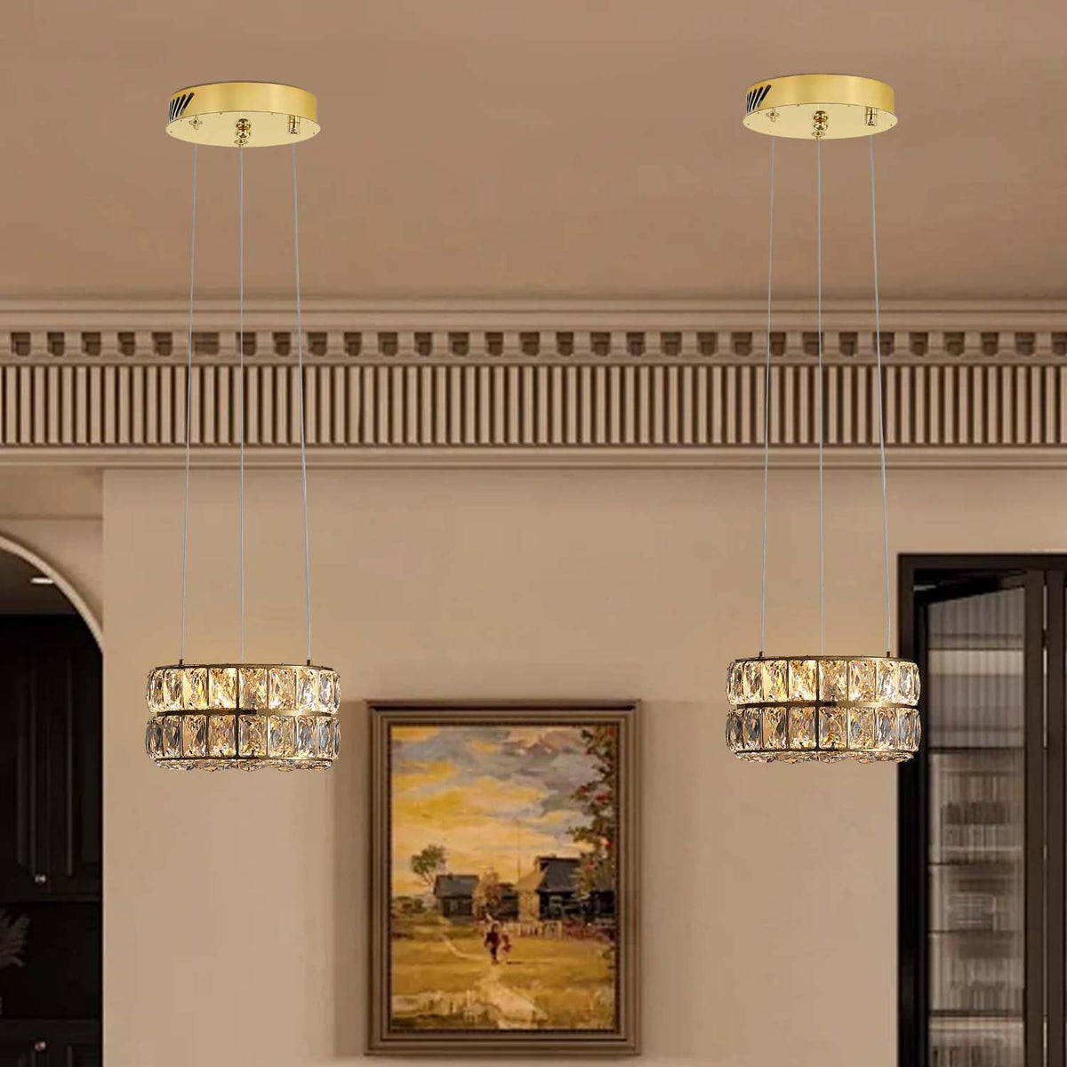 Led 11.8'' Gold Ring Crystal Chandelier, Modern Dimmable Chandeliers Lighting and Hanging Adjustable, LED Round Ceiling Light Fixtures for Dining Room Living Room