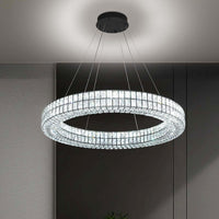 40 Inches Modern Led Dimmable Crystal Chandeliers Black Ring Chandeliers Adjustable Stainless Steel Ceiling Lights Rings Round Pendant Lighting For Living Room & Dining Room