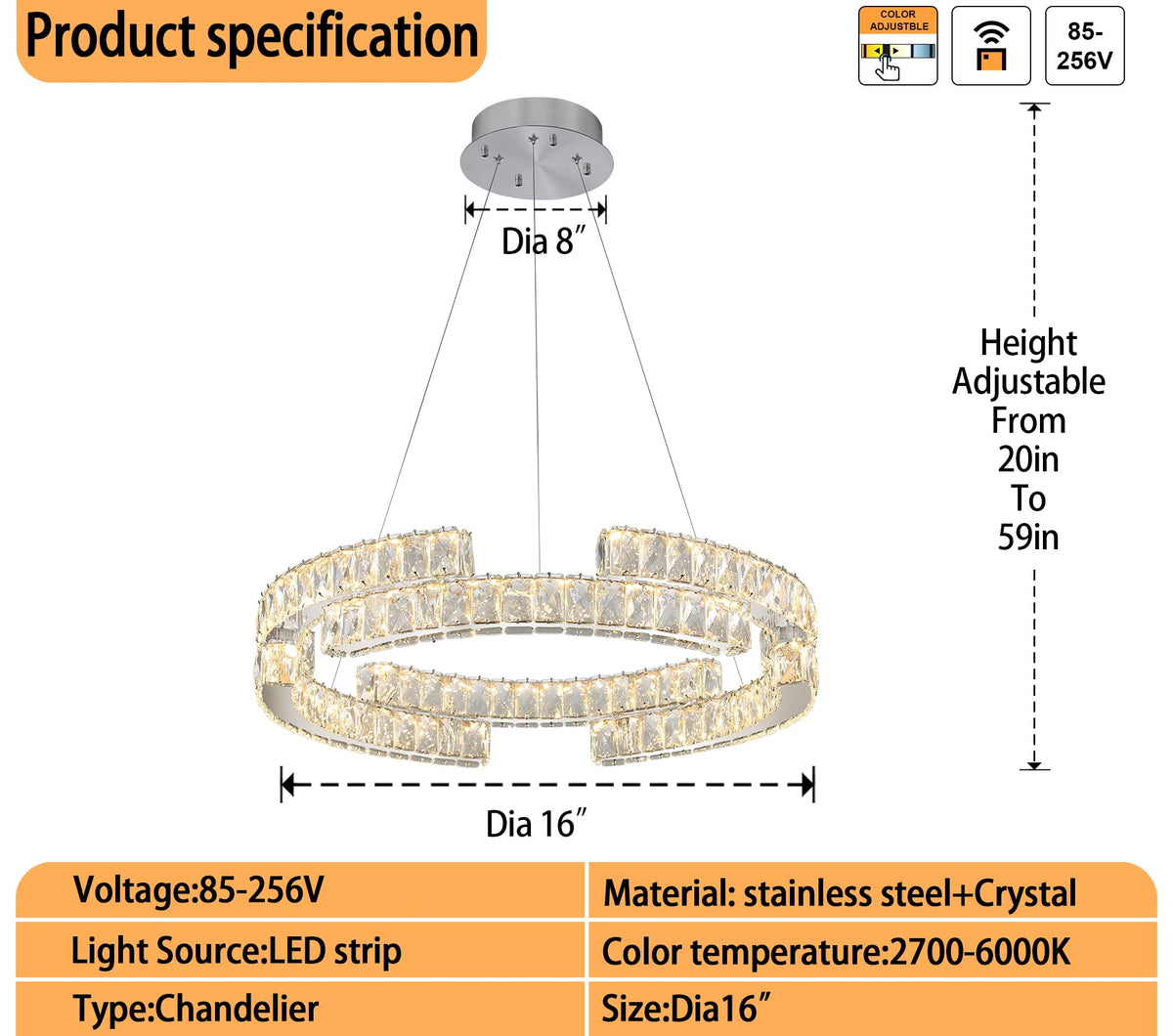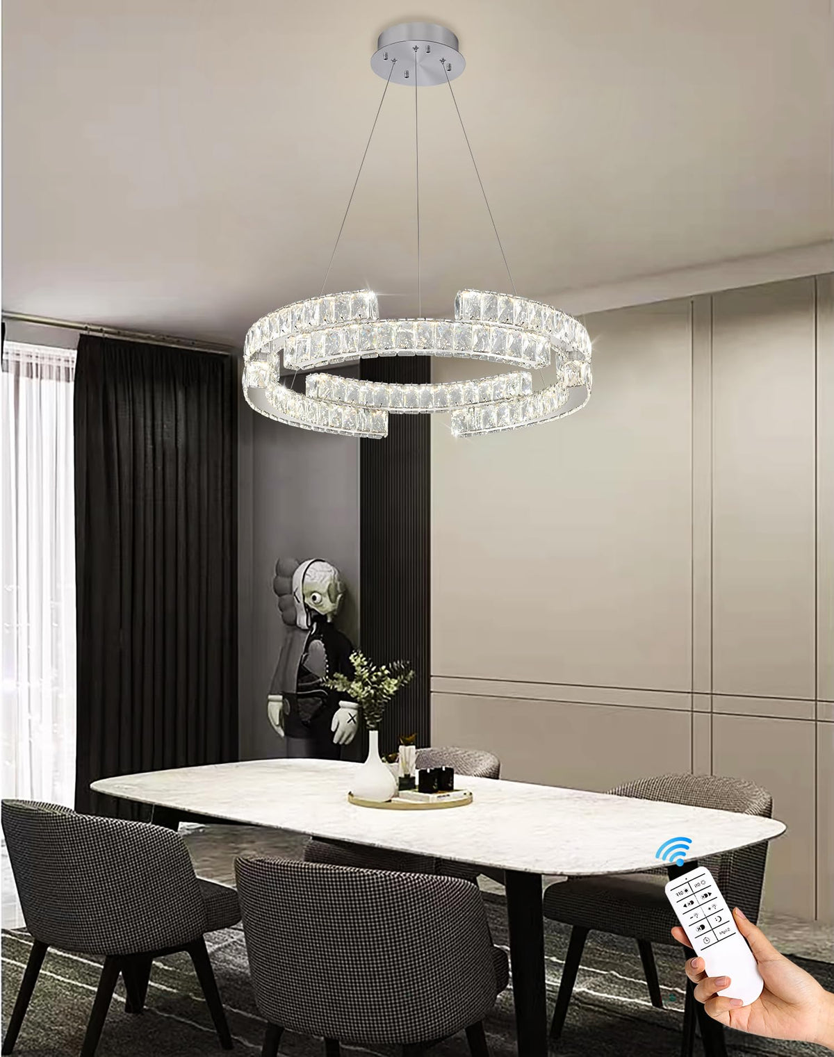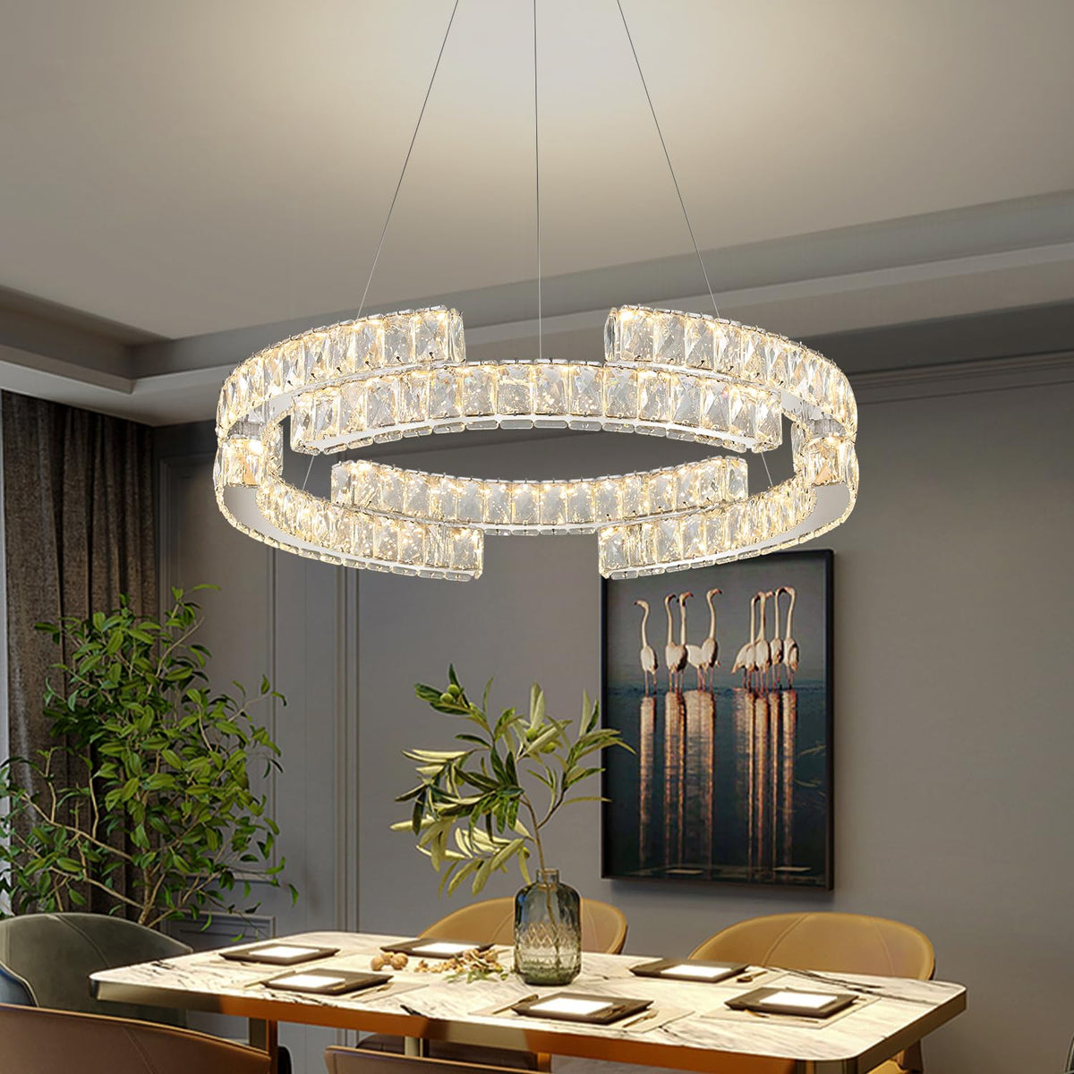IDEQUY Ring Crystal Pendant Light Crystal Chandeliers Foyer Entrance Chandeliers LED Dimmable D32''+D24''+D16''