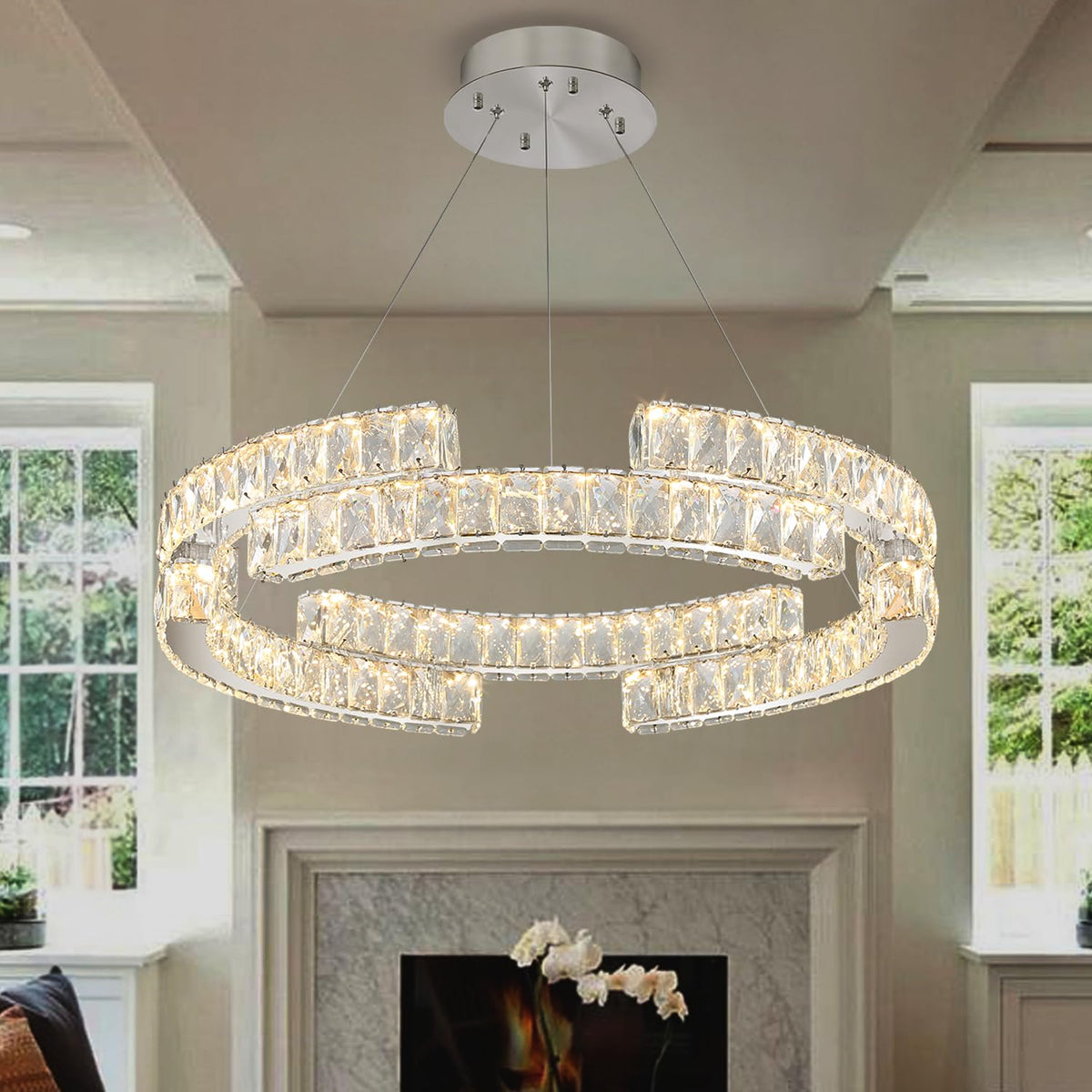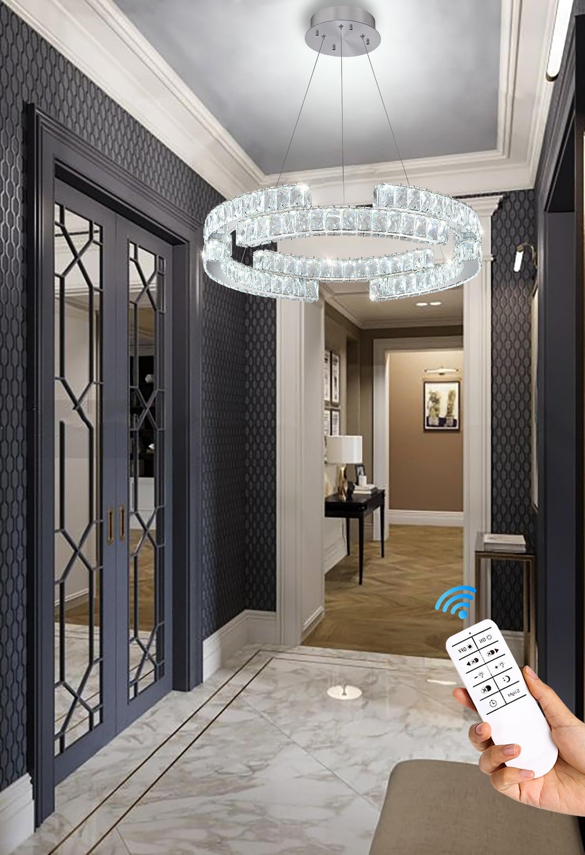Idequy Ring Crystal Pendant Light Crystal Chandeliers Foyer Entrance Chandeliers Led Dimmable D32''+D24''+D16''