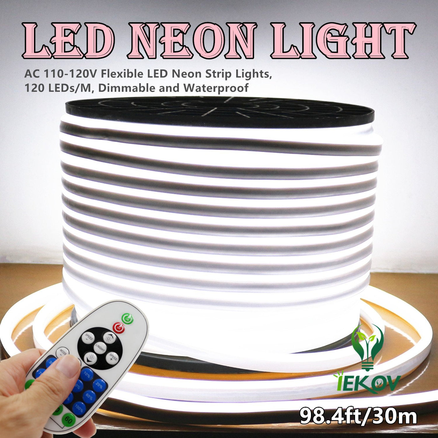 IEKOV LED Neon Light, Dimmable Waterproof 2835 SMD Rope Light, 30m/98.4ft, White, Model NEON LIGHT-W-30M