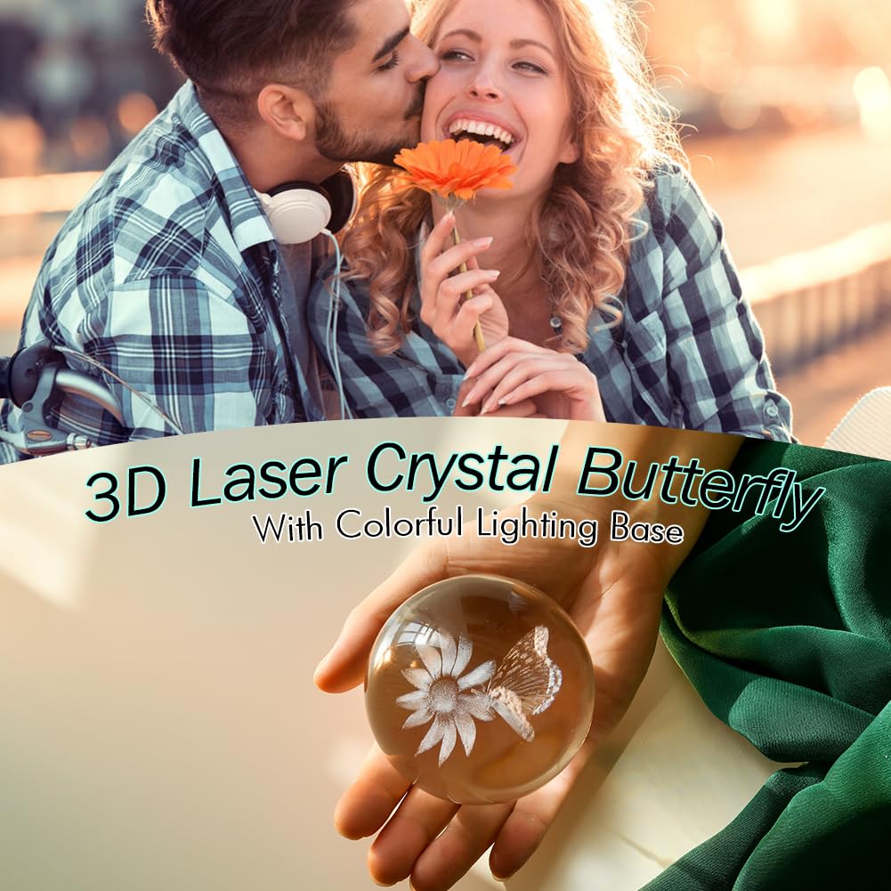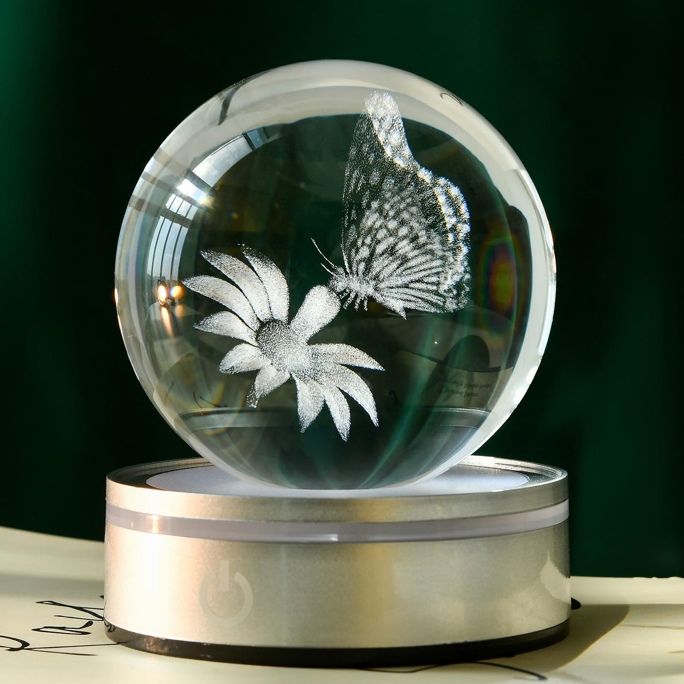 Product Features: 1. 3D Butterfly With Flower Is Laser Engraved In A K9 Crystal Ball. 2. Made With High-End K9 Crystal Making The Crystal Ball More Glossier.With The Advanced Laser Technology Butterfly Is Engraved Into The Crystal Ball Making A Nice Gift For Close Friends And Family Members To Commemorate Special Memories And Friendship. 3. Equipped With A Special Led Lamp Base With 6 Light Modes With Different Colors The Light Colors Can Be Adjusted Automatically Or Constant Making The Dragon Colorful. 4. The Touch Switch On The Base Is Easy To Use Touch The Switch To Change Color You Can Use Batteries Or Connect The Power Via A Usb Cable. 5. This Butterfly Crystal Ball Is Good For Decoration For Your Bedroom Sitting Room Hotel Disco Bar Study And Office. 6. Exquisite Gift Of Birthday ValentineS Day TeacherS Day Christmas Day New Year School Season For Her Women Friends Wife Husband Couples Kids Boyfriend Girlfriend Specification: Material: K9 Crystal Color Of Crystal Ball: Clear Diameter Of Crystal Ball: 80Mm Package Include: 1 X Butterfly Crystal Ball 1 X Wooden Base
