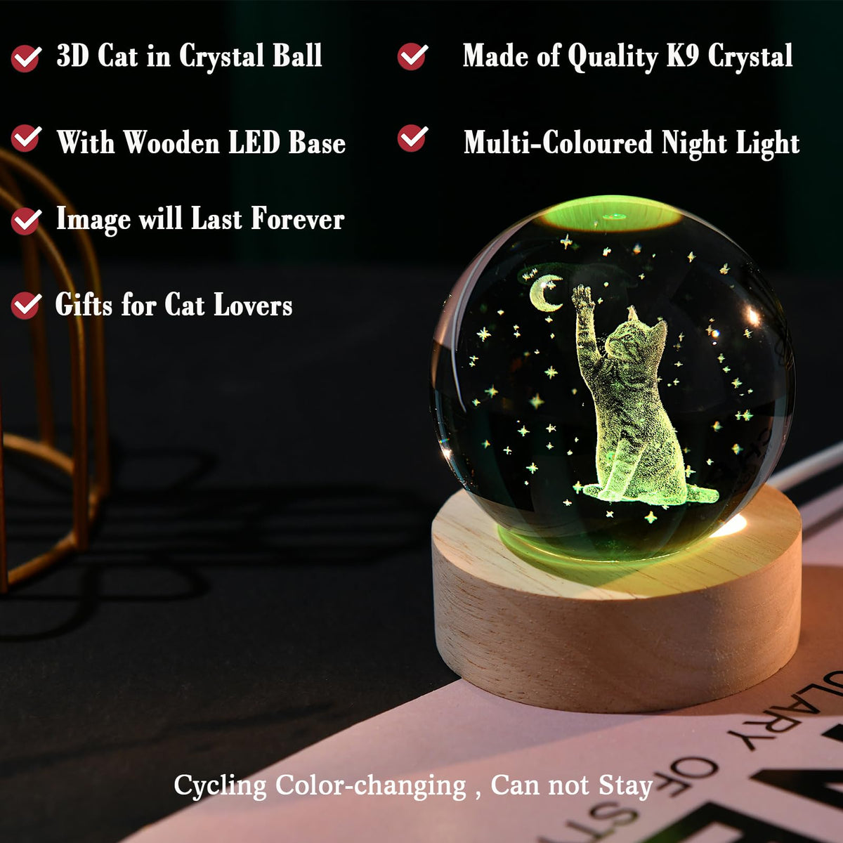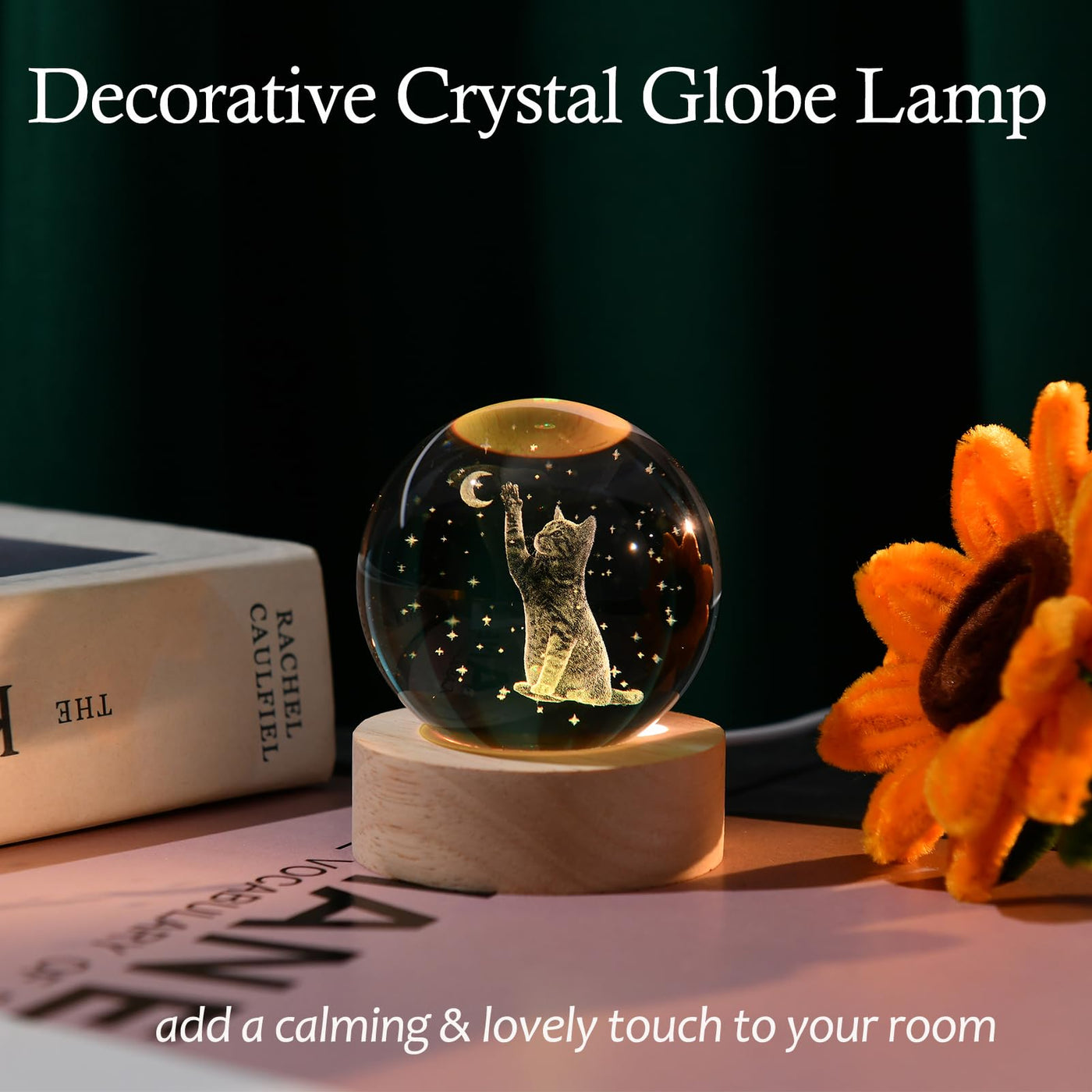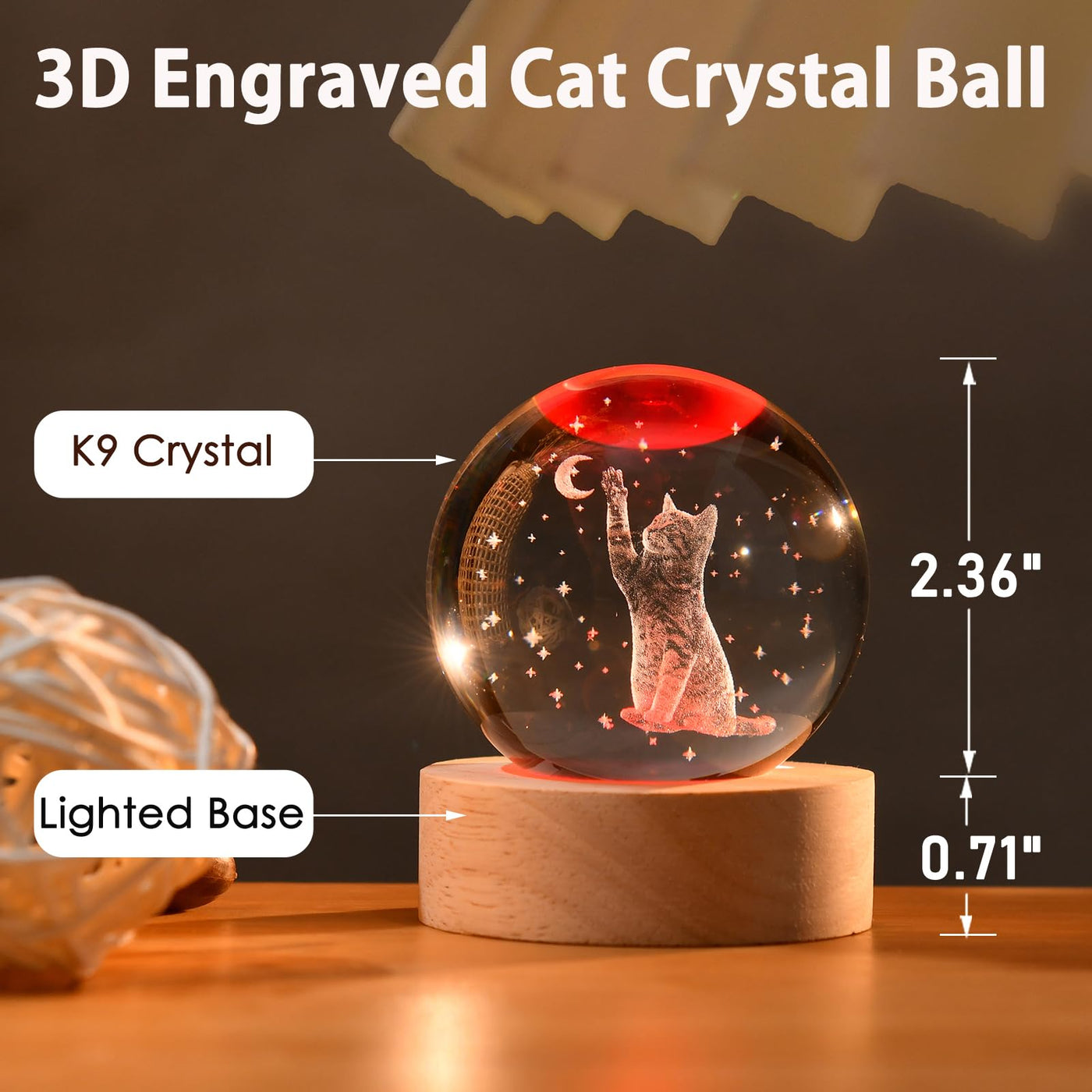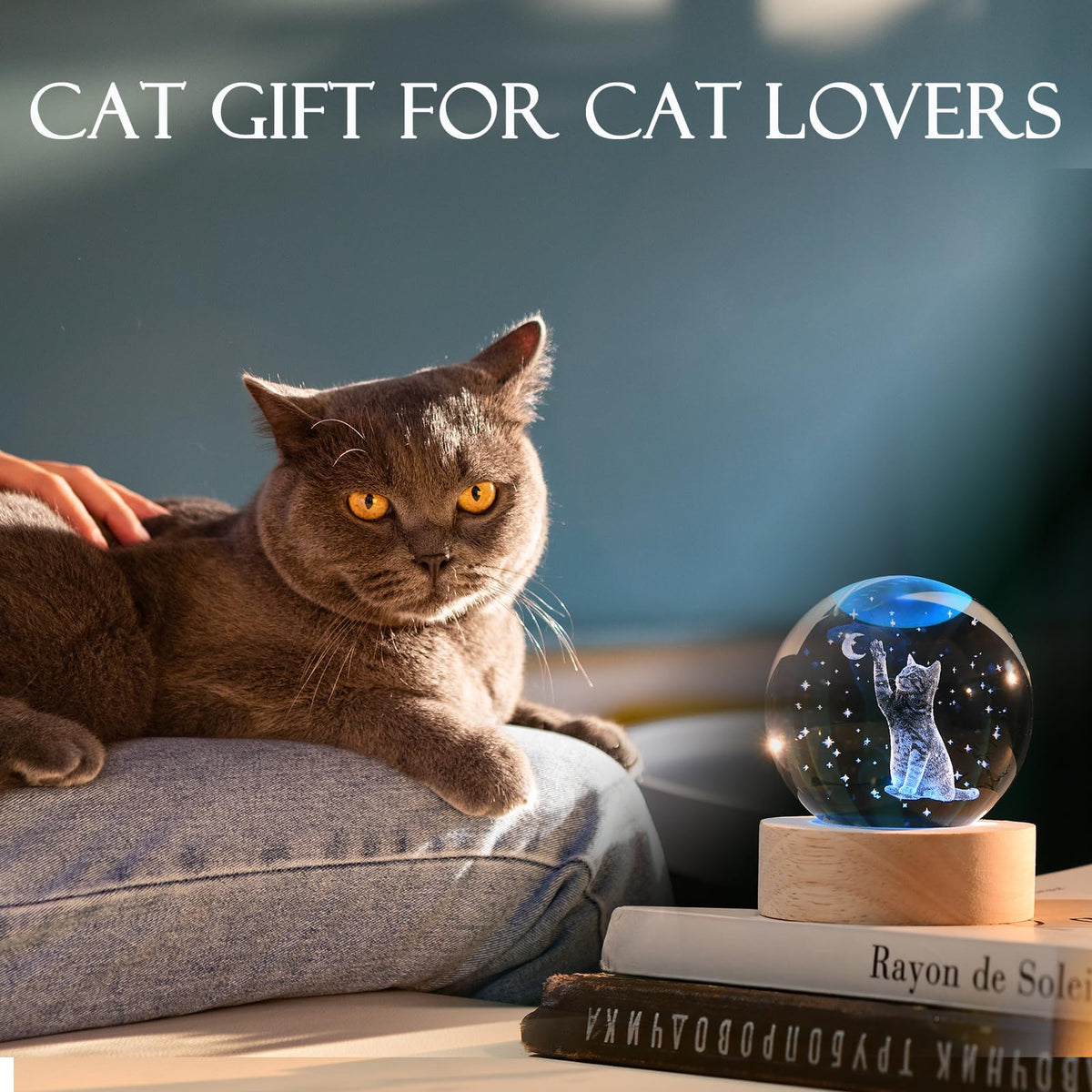 Ifolaina 3D Cat Themed Gifts For Women Cat Related Sympathy Figurines Decor Presents 2.36'' Laser Engraved Crystal Ball With Woo