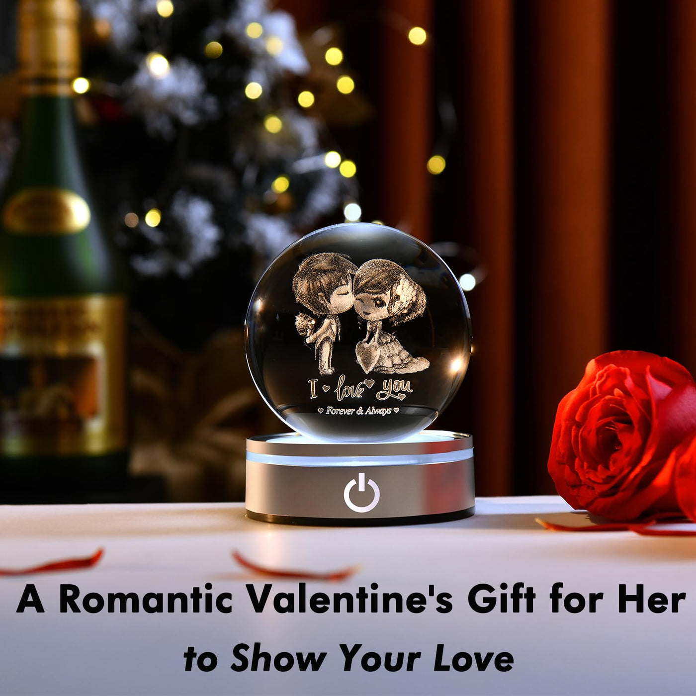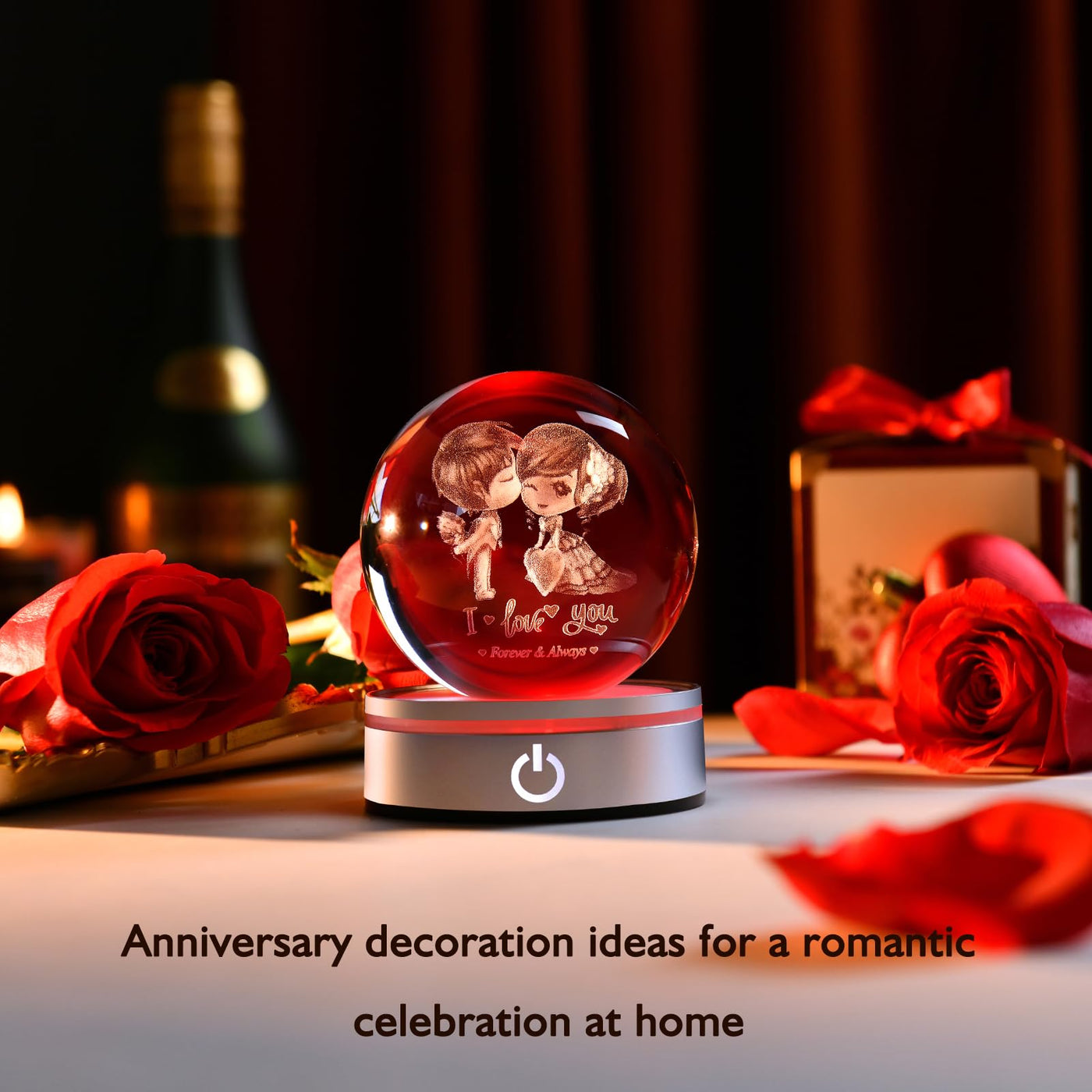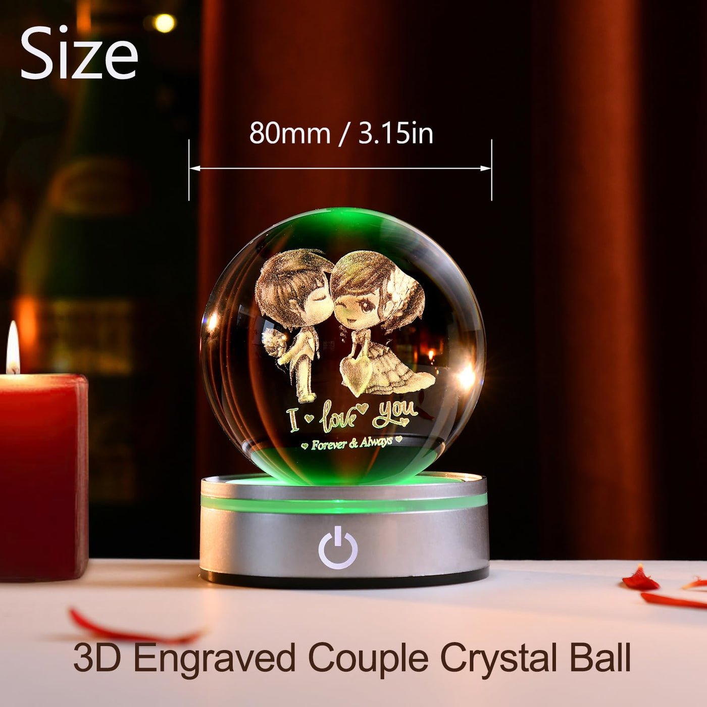 Ifolaina 3D Couple Crystal Ball Gifts For Wife Night Light Laser Engraved Glass Valentine Sphere Gifts For Her Decorative Crysta