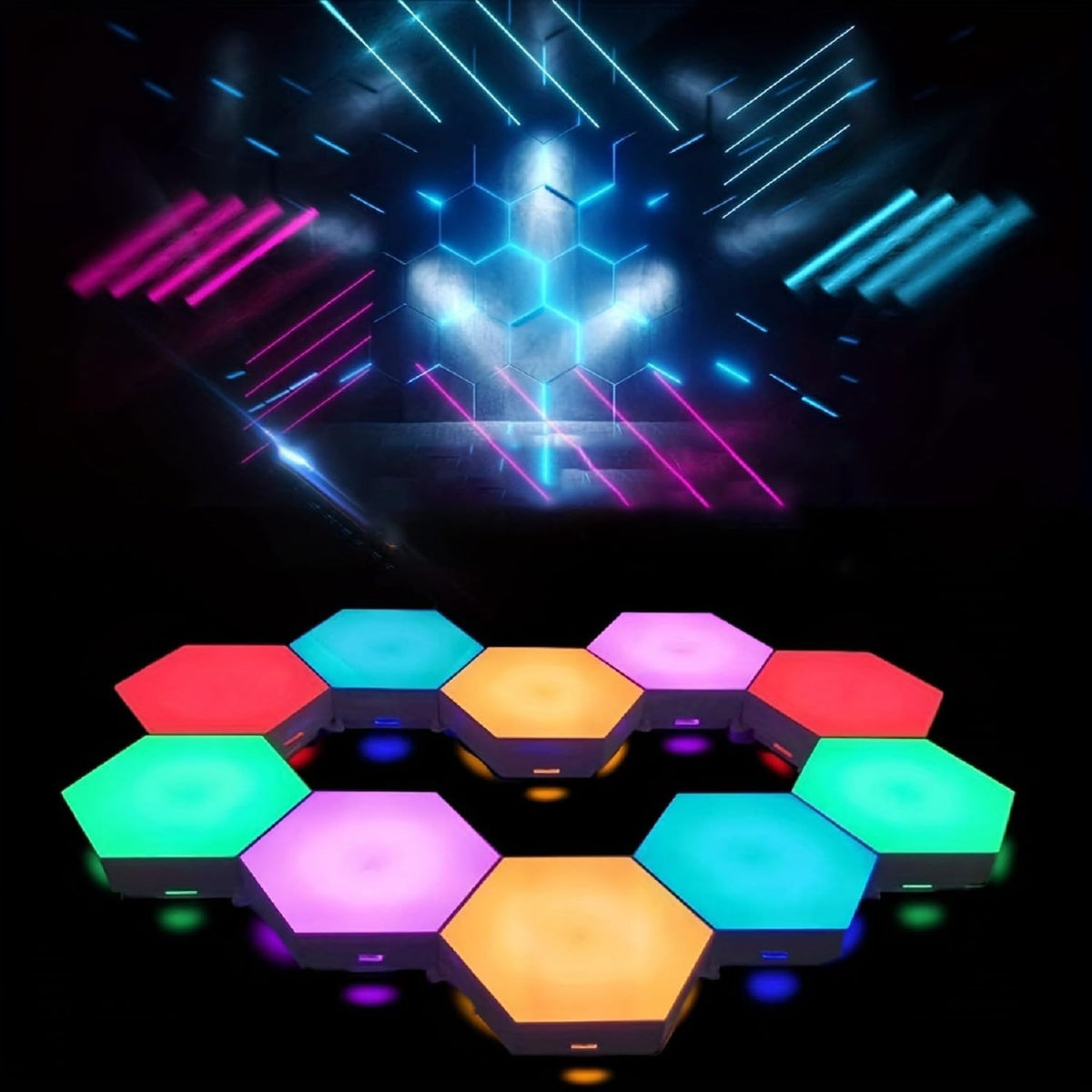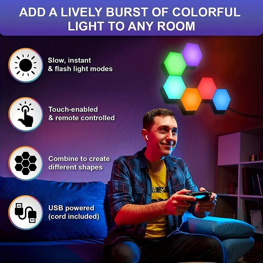 Ifthfour 10 Pack Hexagon Light Panels - Smart Rgb Hexagon Led Lights Wall Lights Remote Control Lights For Lving Room, Bedrooms,