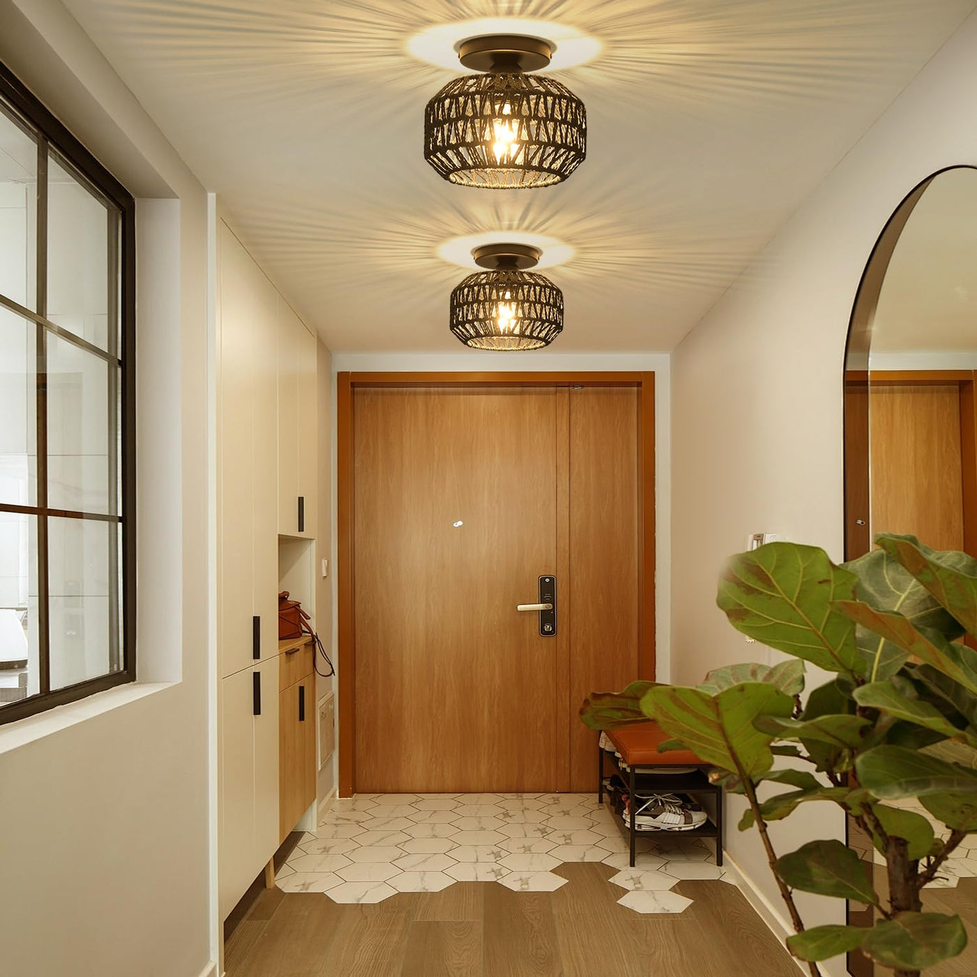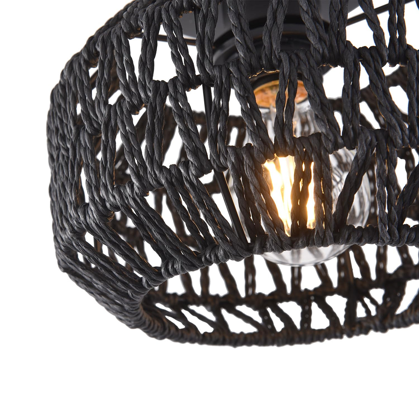This is a 1-light E26 bulb socket close to ceiling light. Its distinctive metal canopy and the abaca rope decoration light shade create a natural warmth of the atmosphere and provide another layer of cozy rural style. the ceiling light will be an excellent addition to your kitchen, bedroom, living room, hallway, entryway, porch, or loft. Specification: Materials: Metal, Abaca rope Bulbs: 1*60W E26 (Bulbs Not Included) Voltage: 110-120V Power Source: Hardwire Mounting Accessory Included: Yes