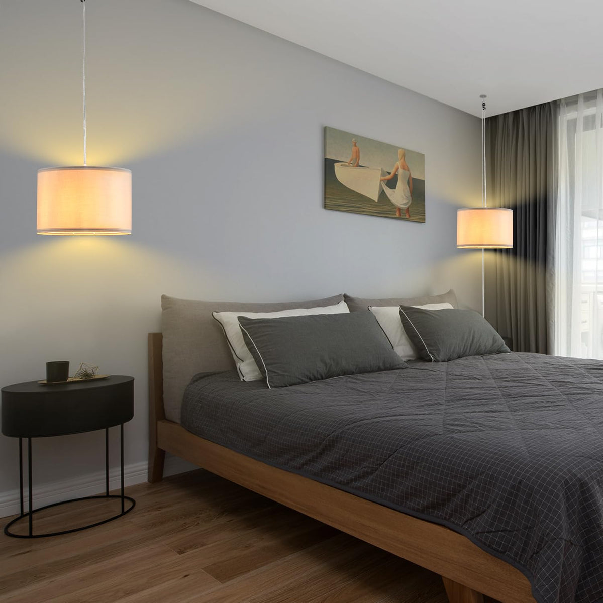 Ihengyanlt 2 Pack Plug In Pendant Light, Hanging Light With 15Ft Clear Cord, On/Off Switch, French Grey Fabric Lamp Shade, Hangi