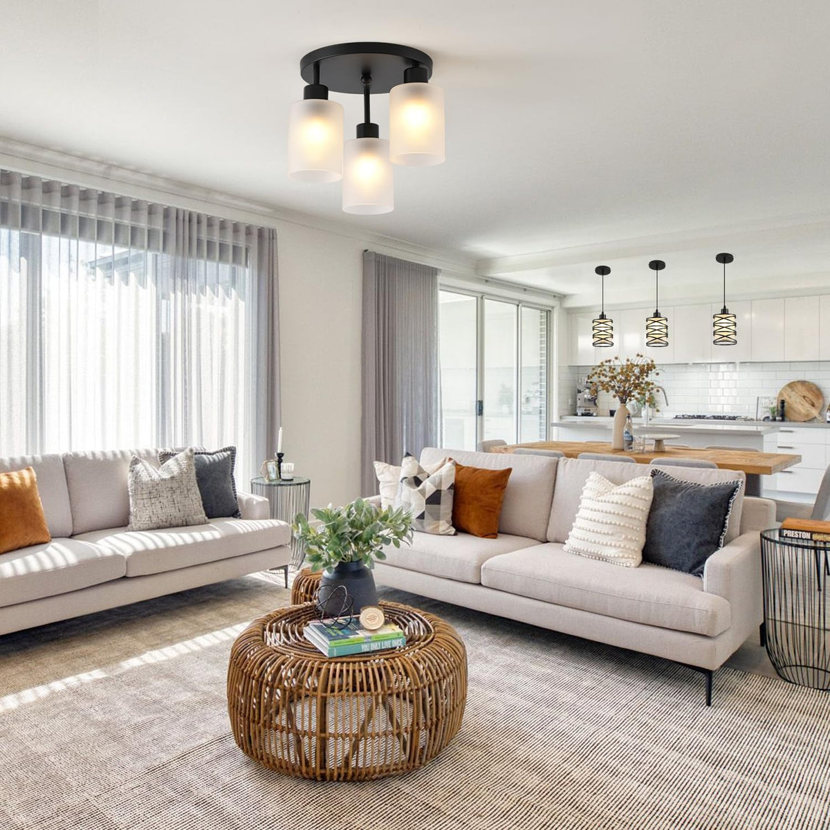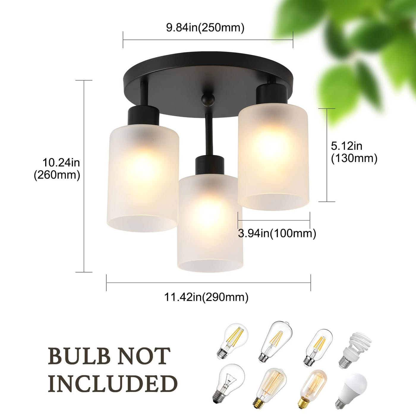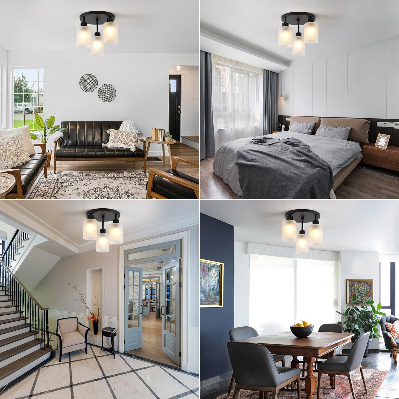 3-Light Semi Flush Mount Ceiling Light Featured High-Quality Frosted Glass Shades , This Semi-Flush Mount Ceiling Light Is Easy And Fast To Assemble, Will Do A Great Addition To Your Modern Farmhouse! Sturdy Metal Canopy High-Quality Glass Lamp Shades With The Glass Shades Creating A Wonderful Glow, Sturdy And Not Accessible To Broken, Farmhouse Ceiling Light Fixture Will Illuminate Your Space With Some Appealing Style. Versatile Compatibility The Clear Glass Ceiling Light Is Compatible With A Dimmer, Standard E26 Bulb Socket, You Can Use A Dimmable Bulb To Decor Your Dream Home.