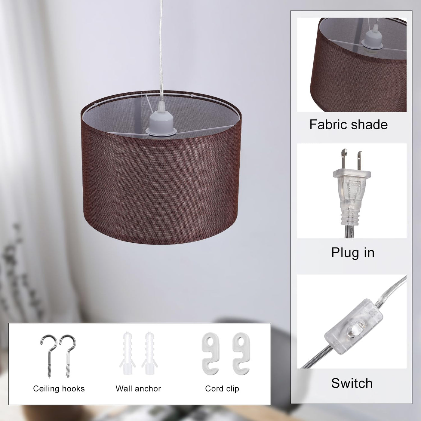 IHENGYANLT Pendant Light with 15Ft Cord, On/Off Switch, Coffee Fabric Shade, Model P450