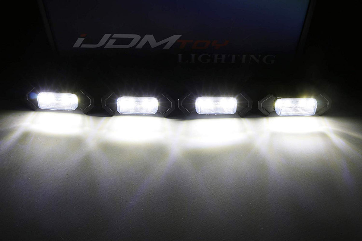 Q: What type of lights are included in the lighting kit?A: The kit includes four 4-SMD 6000K white LED light assemblies that provide a bright illumination, enhancing visibility and safety during driving.